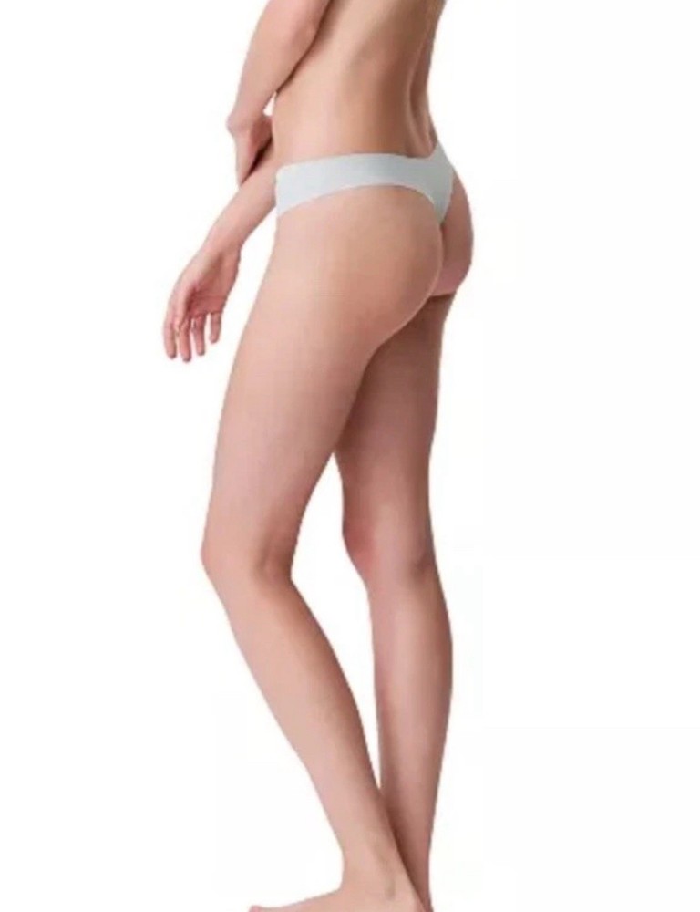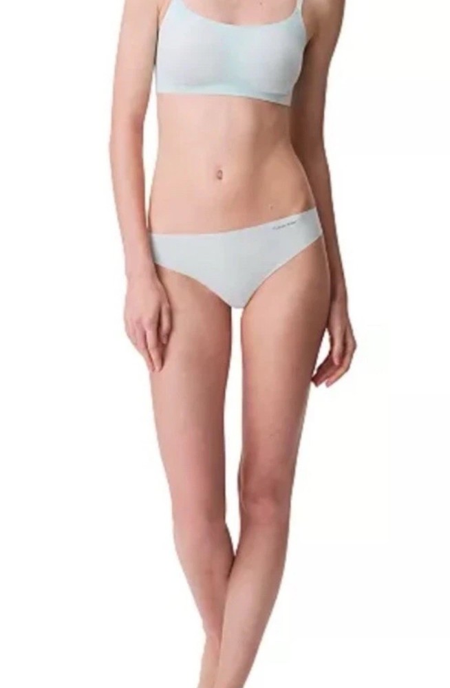 The Calvin Klein Invisibles Solid Thong Panty in Jade, size L, is a stylish and comfortable bikini panty designed for women. Made from a blend of polyamide and elastane, this panty features a solid green color with a mid-rise waist and a thong style cut. It is machine washable and made from lightweight, breathable microfiber fabric for added comfort. Perfect for beach days or lounging, this Calvin Klein panty is a stylish addition to any woman's swimsuit collection.