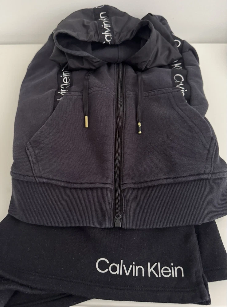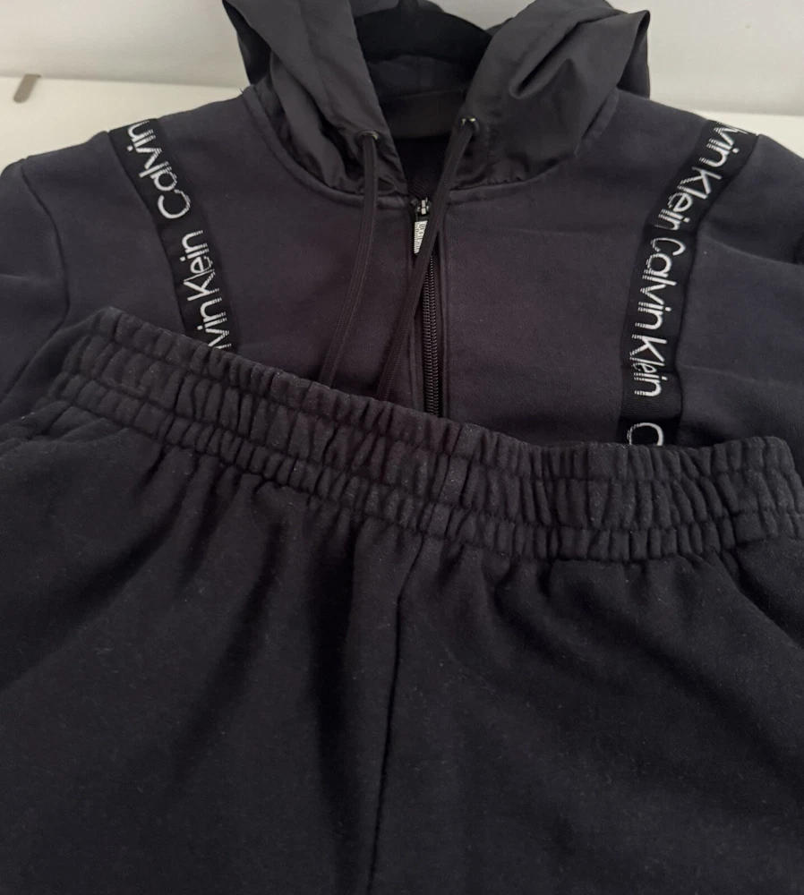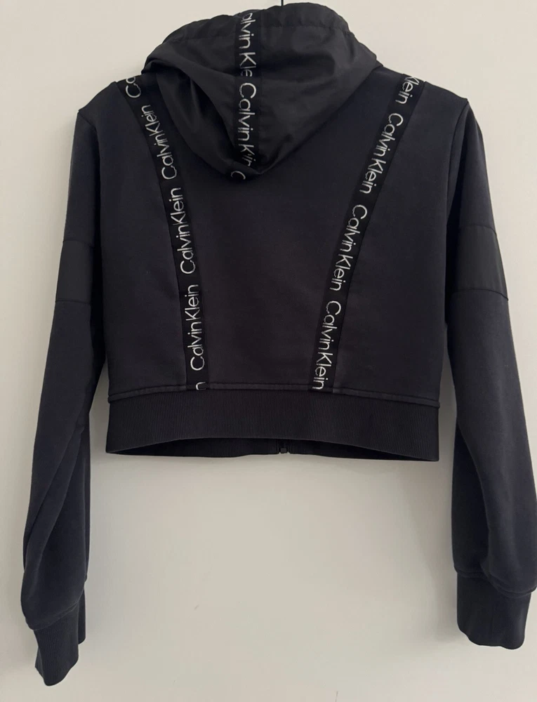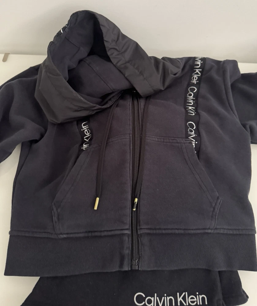 Calvin klein performance woman Calvin Klein Jeans Logo Piping Full Zip Sweatshirt and Matching Short in Black Size Small Woman cotton crop top hoodie & Short Set * side pocket black * Zip * Cotton This beautiful cotton set, purchased in Melbourne, Australia 🇦🇺 Condition: Used, in good condition The hoodie has been washed a few times, which has caused a slight colour difference between the top and shorts.