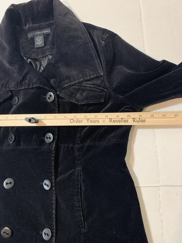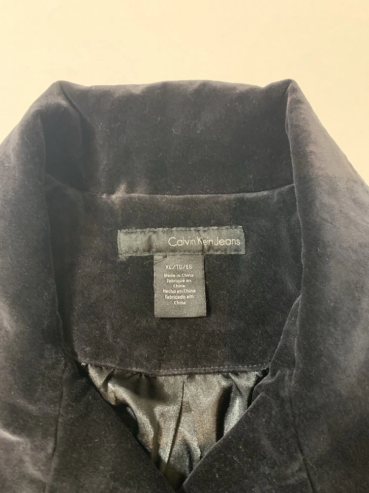 Upgrade your wardrobe with this stunning Calvin Klein Jeans women's jacket. The black velvet outer shell material provides a luxurious feel, while the mid-length and long sleeves offer warmth and comfort. The double-breasted snap and button closure adds a classic touch to this basic jacket. Featuring a collared neckline, pockets, and a lined interior made of elastane, this jacket is perfect for travel, casual occasions, and winter, fall, and spring seasons. The jacket's regular fit and size type make it a great addition to any woman's wardrobe.