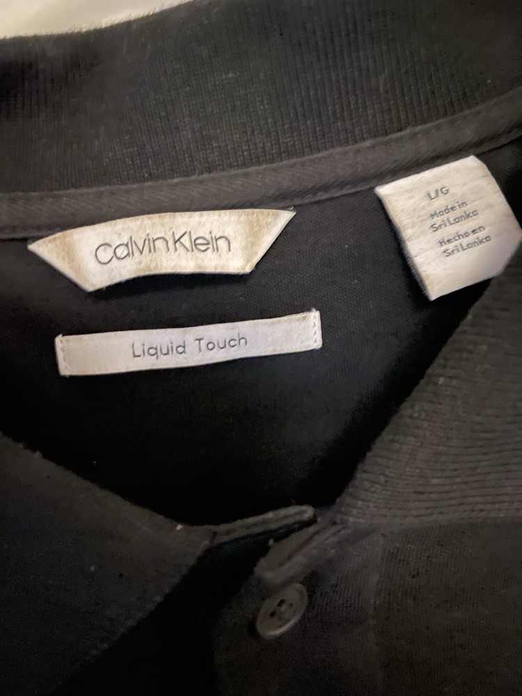 This is a classic Calvin Klein Liquid Touch Polo Shirt in black , men’s size L/G (Large) . Features include: Soft “Liquid Touch” fabric for comfort and style Short sleeves with polo collar and 3-button placket Solid black color – versatile for casual or dressy looks Made in Sri Lanka
