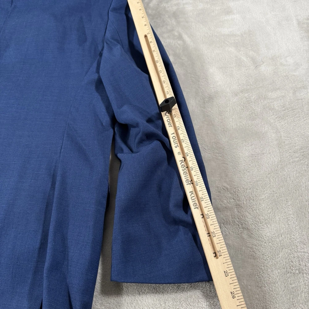 This Calvin Klein blazer is a stylish addition to any wardrobe. The blue color and solid pattern make it perfect for any occasion, whether it's for business, casual or a party. The blazer is made of a combination of spandex and wool, and features a woven fabric type that makes it comfortable to wear during any season. The blazer is a 2 piece, with a single-breasted cut and a two-button front button style. The notch lapel style and four-button sleeve button style add to its sleek design. The blazer is slim fit, with a regular size type and a chest size of 48. It is great for men who want to look stylish and well-dressed.
