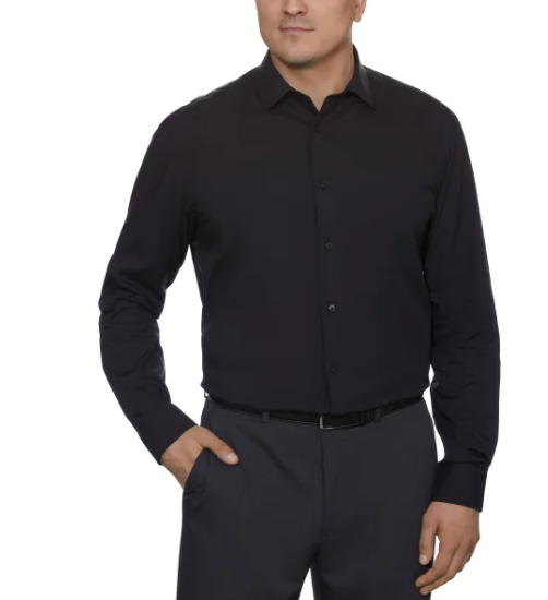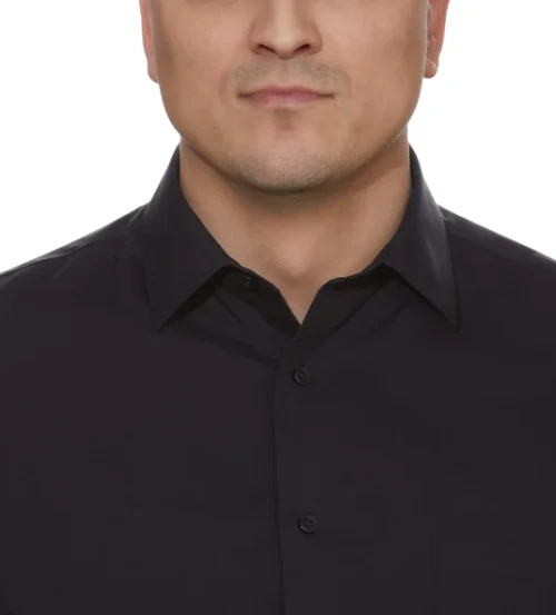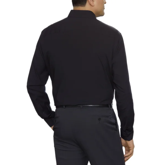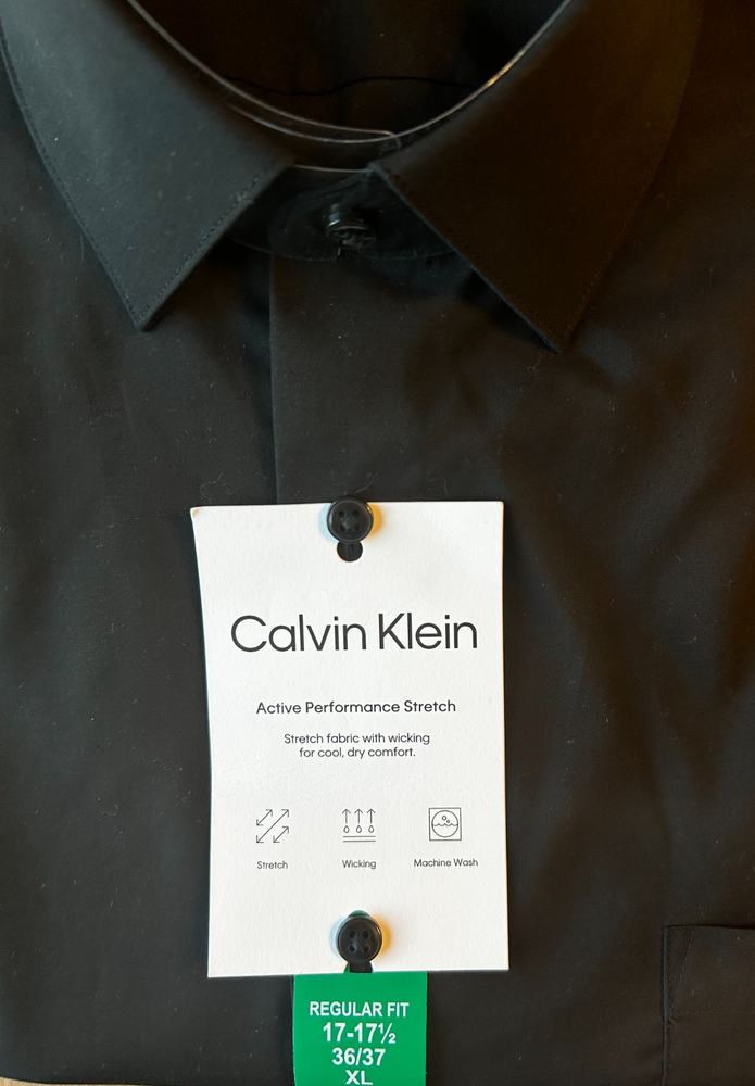 Features: Regular Fit Active Performance Stretch Fabric Spread Collar Calvin Klein® Moisture wicking wrinkle resistance stretch fabric with wicking for cool Left chest pocket Made in Bangladesh Content: 87% Lyocell | 13% Elasterell-P Approximately 115 GSM (3.4oz) fabric weight Lightweight Neck (in): 17-17 1/2 Sleeve (in): 36/37 Model is 6’1” wearing size 16-16.5 34/35