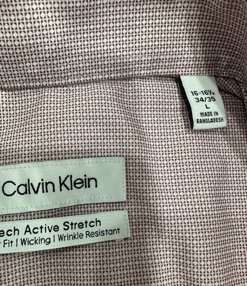 Calvin Klein Men’s Tech Active Stretch Dress Shirt Size: Large (16-16.5-34/35) Color: Red Content: 64% Cotton / 33% Polyamide / 3% Elastane