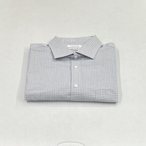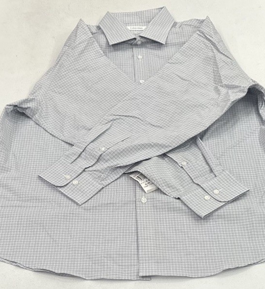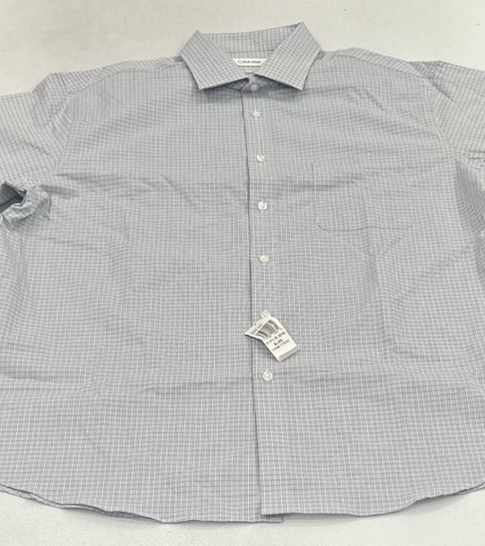Calvin Klein Men's Wrinkle Free Dress Shirt Size: X-Large (17-17.5,32/33) Color: Blue Content: 64% Cotton / 32% Recycled Polyester / 4% Elastane