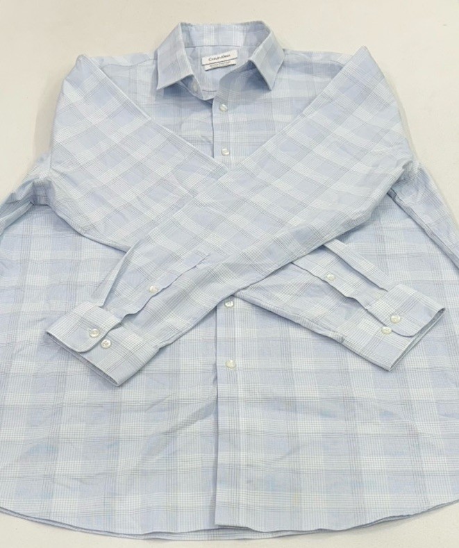 Calvin Klein Men's Wrinkle Free Dress Shirt Size: X-Large (17-17.5,34/35) Color: Light Blue Content: 65% Cotton / 31% Recycled Polyester / 4% Elastane