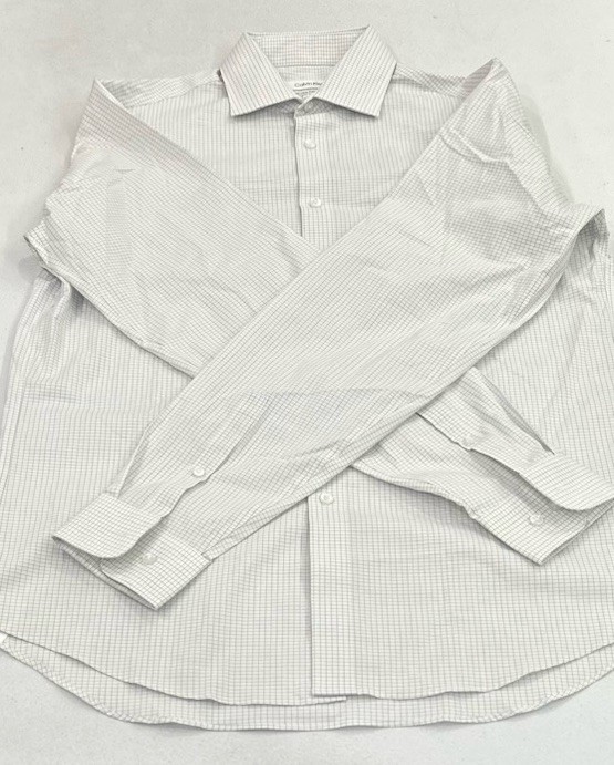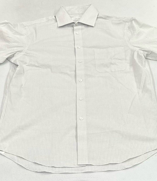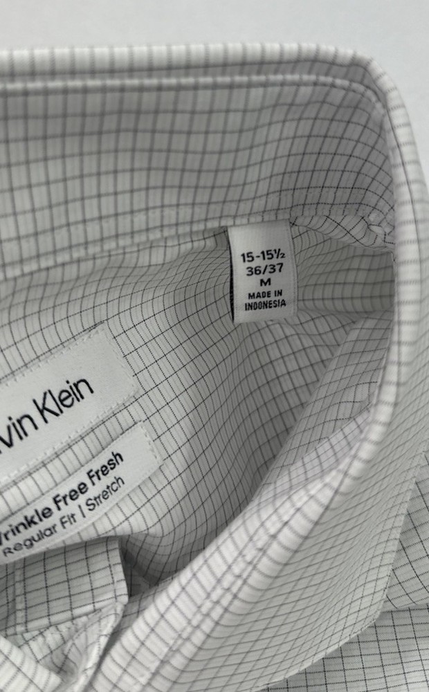 Calvin Klein Men's Wrinkle Free Dress Shirt Size: Medium (15-15.5, 36/37) Color: White Content: 64% Cotton | 32% Recycled Polyester | 4% Elastane