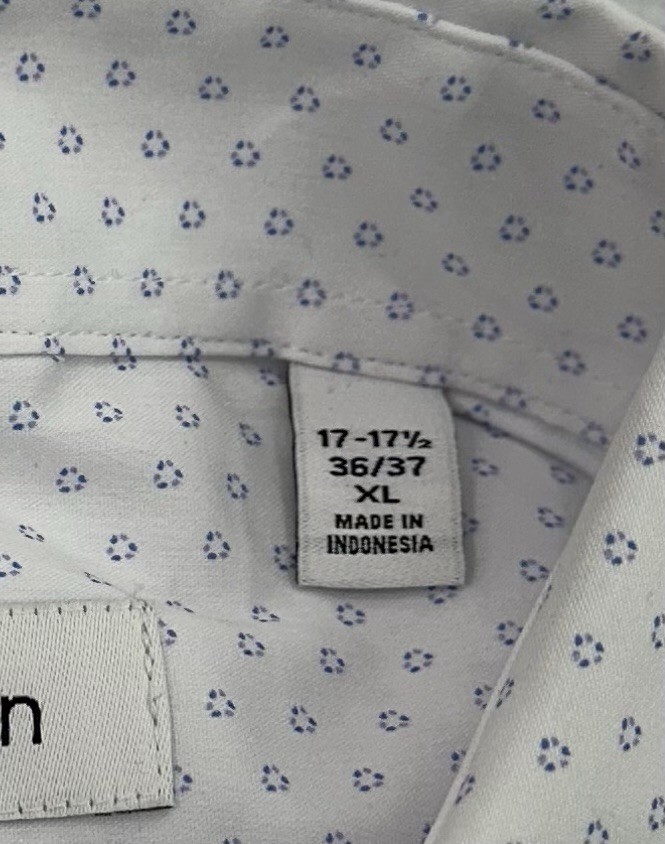 Calvin Klein Men's Wrinkle Free Dress Shirt Size: X-Large (17-17.5, 36/37) Color: White Content: 64% Cotton / 32% Recycled Polyester / 4% Elastane