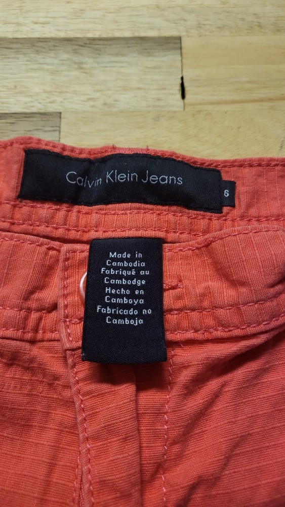 Elevate your summer wardrobe with these Calvin Klein women's shorts in a vibrant shade of orange. The chino style shorts feature a flat front design with a zip closure and a mid-rise waistline. The cotton blend material is perfect for walking and other casual activities, and the pockets provide ample space for your essentials. The shorts are available in size 6 with a waist size of 30 inches and an inseam of 4 inches. The solid pattern and American theme make them suitable for travel and other occasions. Add a touch of sophistication to your summer wardrobe with these stylish shorts from Calvin Klein. C9