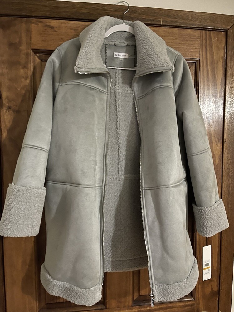 Manufacturer - Calvin Klein Retail - $269.50 Style Type - Walker Coat Collection - Calvin Klein Closure - Zipper Material - 100% Polyester Fabric Type - Faux Suede Specialty - Panel
