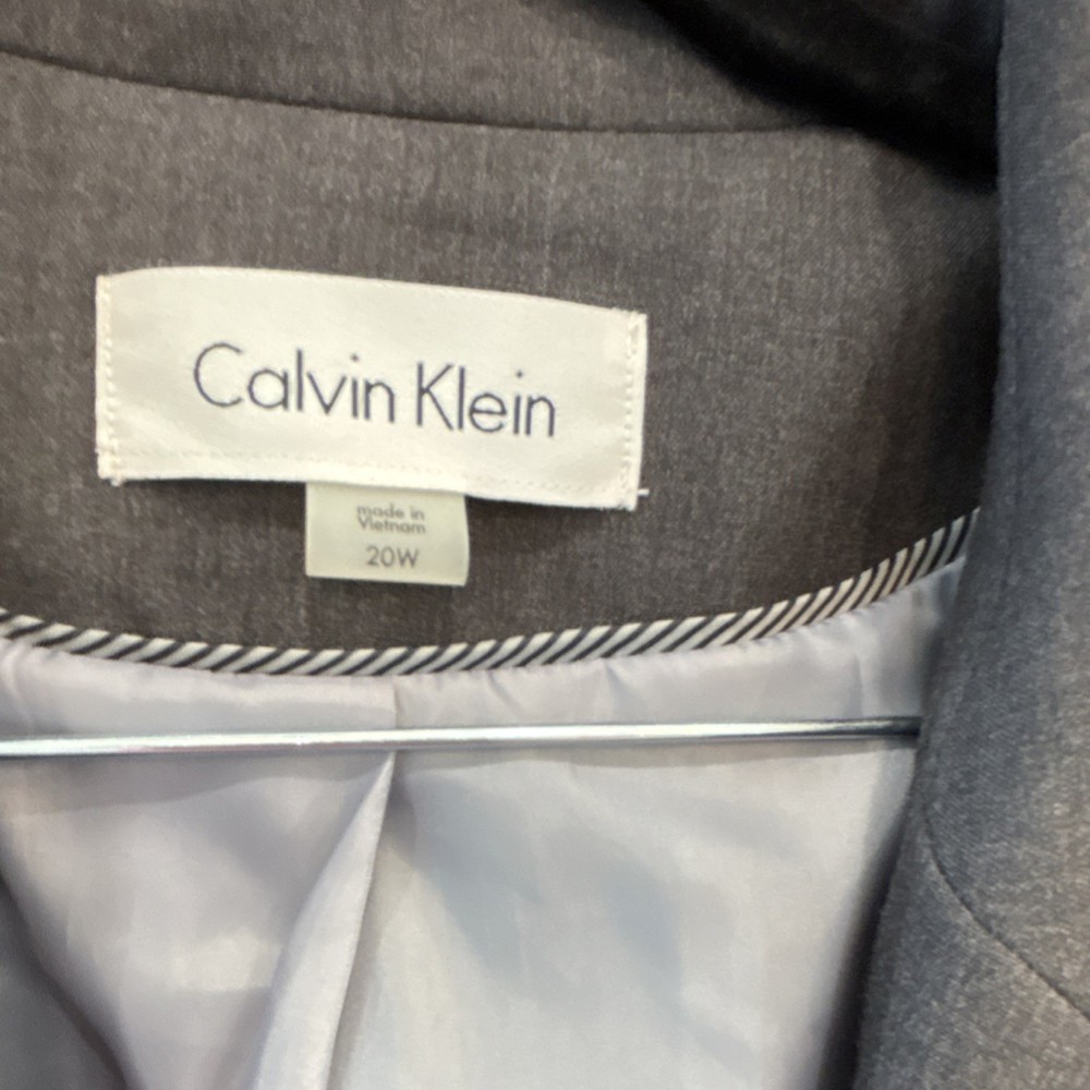 Calvin Klein Women's Gray Blazer Size 20W Notch Lapel Lined Single-Breasted
