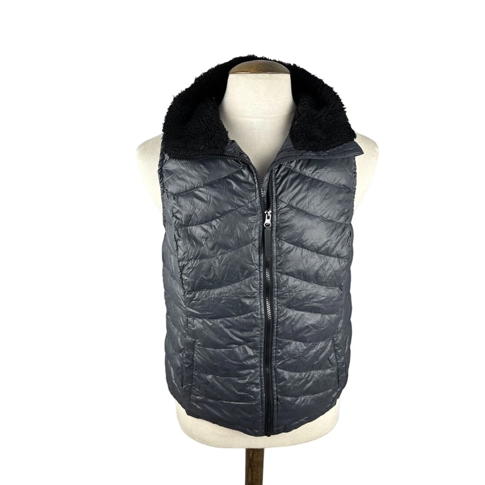 This Calvin Klein Women's Grey Jacket Gilet in size XL is a stylish and warm option for various occasions like travel, parties, workwear, and more. Made from wind-resistant nylon with a quilted design, the sleeveless gilet features a full zip closure and down insulation for added comfort. The mid-length jacket has a grey colour with no pattern, making it a versatile and fashionable choice for autumn, winter, spring, or summer wear. Perfect for those looking for a designer piece that combines both style and functionality. Pit to Pit: Approx 21" Collar to Hem: Approx 25"