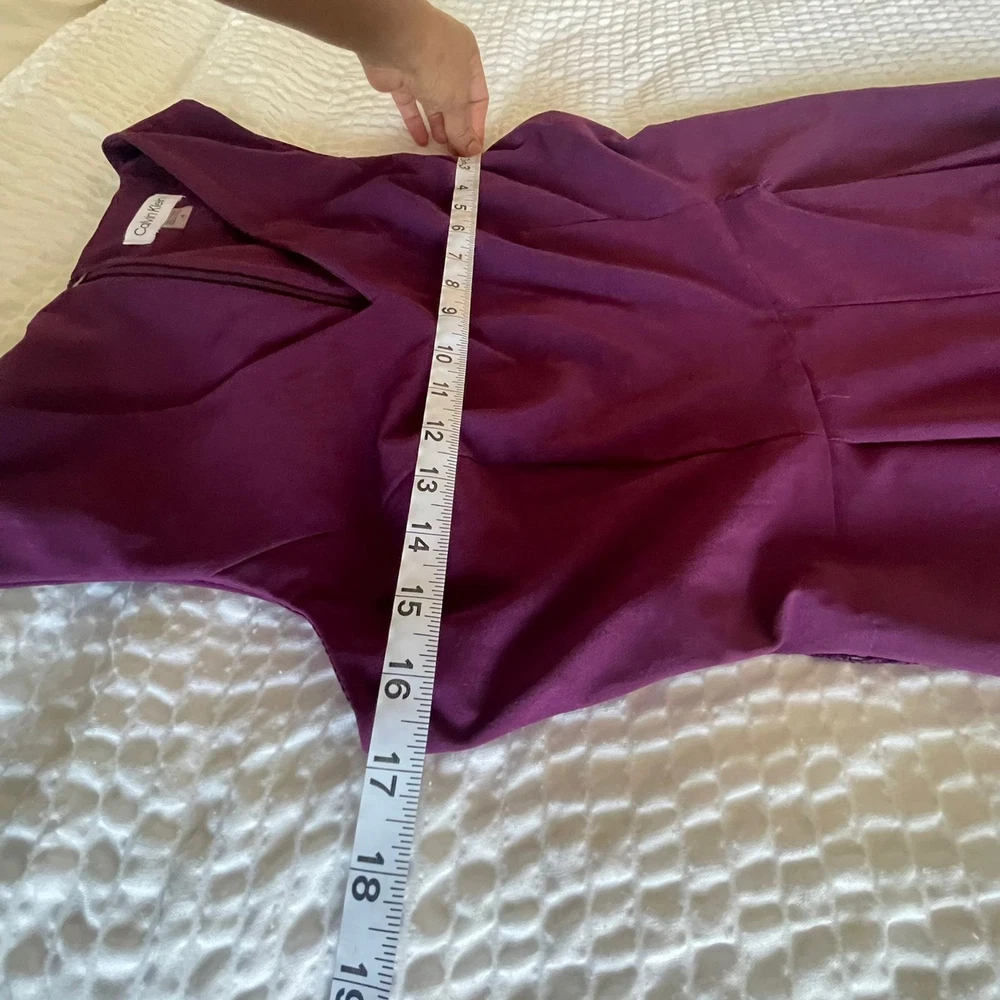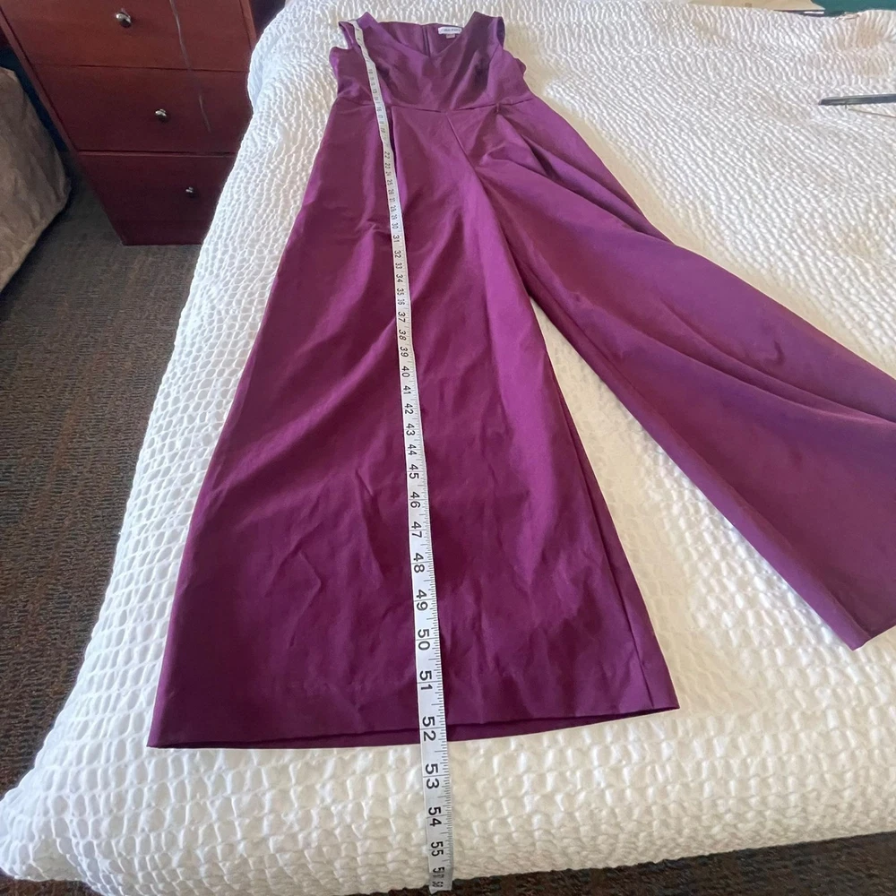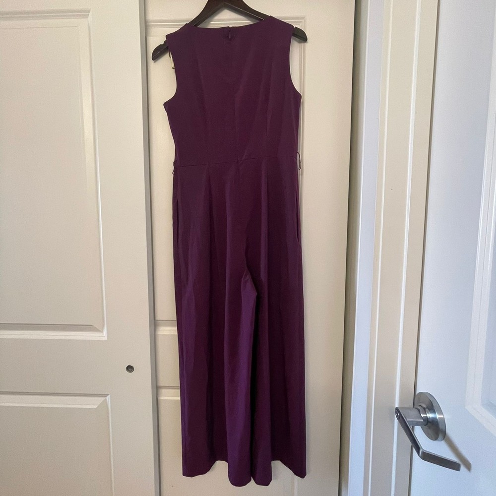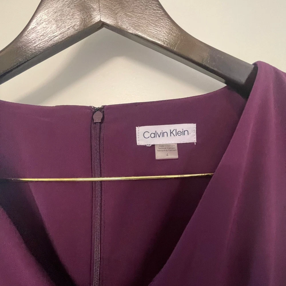 Calvin Klein Women’s Purple Sleeveless V-Neck Wide Leg Jumpsuit – Size 4 Elegant and modern, this Calvin Klein jumpsuit features a flattering V-neckline, sleeveless design, and sophisticated wide-leg silhouette. The rich purple color adds a bold yet refined touch, making it perfect for special occasions, evening events, weddings, or cocktail parties. Designed with clean tailoring for a polished, elongating fit. ✨ Details: Brand: Calvin Klein Size: Women’s 4 Color: Purple Neckline: V-neck Sleeves: Sleeveless Leg Style: Wide leg Closure: back zipper Length: Full length Chic one-piece styling — easy to dress up with heels and statement accessories. 🔹 Condition: Excellent pre-owned condition.