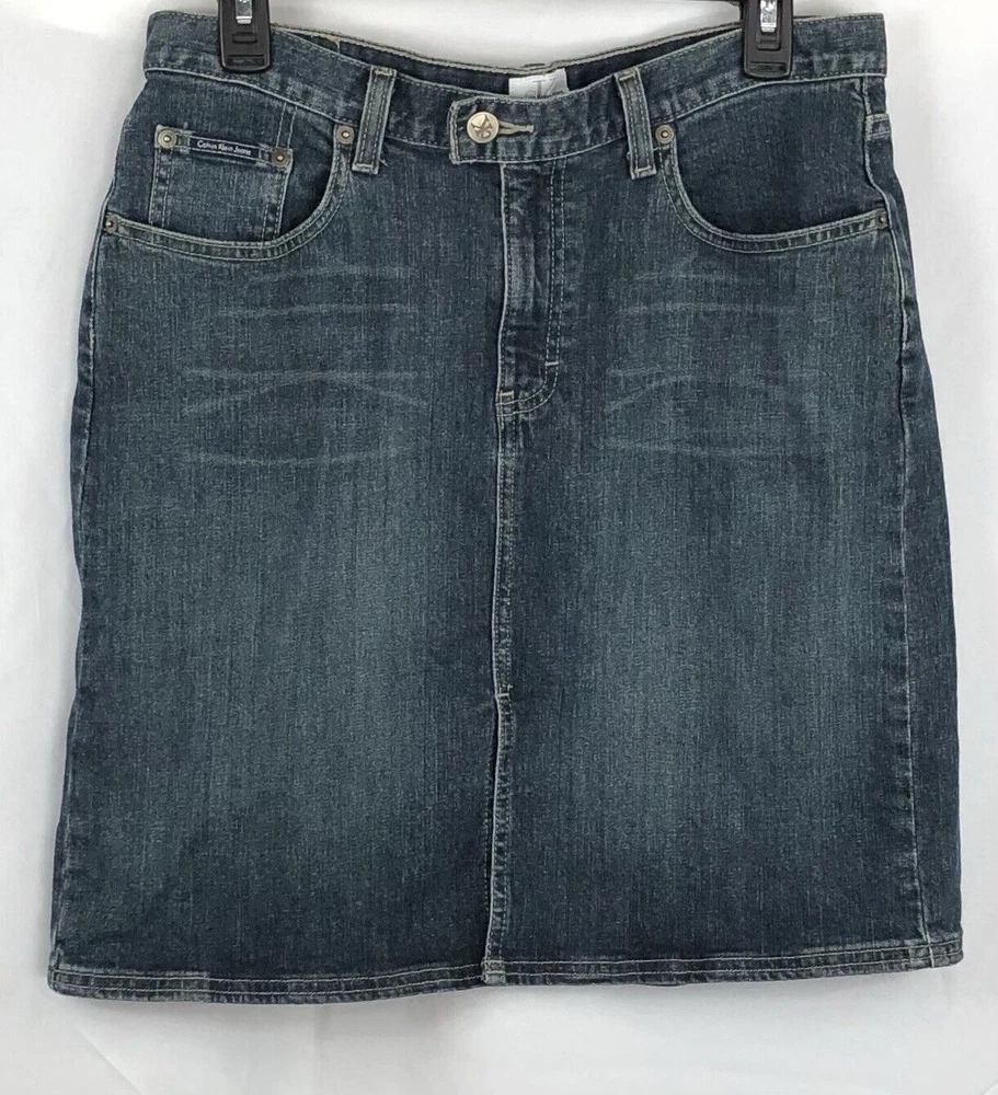 Style: Straight & Pencil Skirt Length: Knee Length Pattern: Solid Seller Notes: “Excellent....No visible signs of wear..No rips,stains,holes or tears” Garment Care: Machine Washable Occasion: Casual, Workwear Personalize: No Closure: Zip Theme: 90s, Bohemian, Grunge, Hippie, Retro, Classic, Modern, y2k, 2000s Material: Cotton, Spandex Season: Fall, Spring, Summer, Winter Vintage: Yes Size Type: Regular Type: Skirt Color: Blue Department: Women Features: All Seasons, Pockets, Slit Brand: Calvin Klein Fabric Type: Denim Accents: Button, Zipper Handmade: No Size: 8