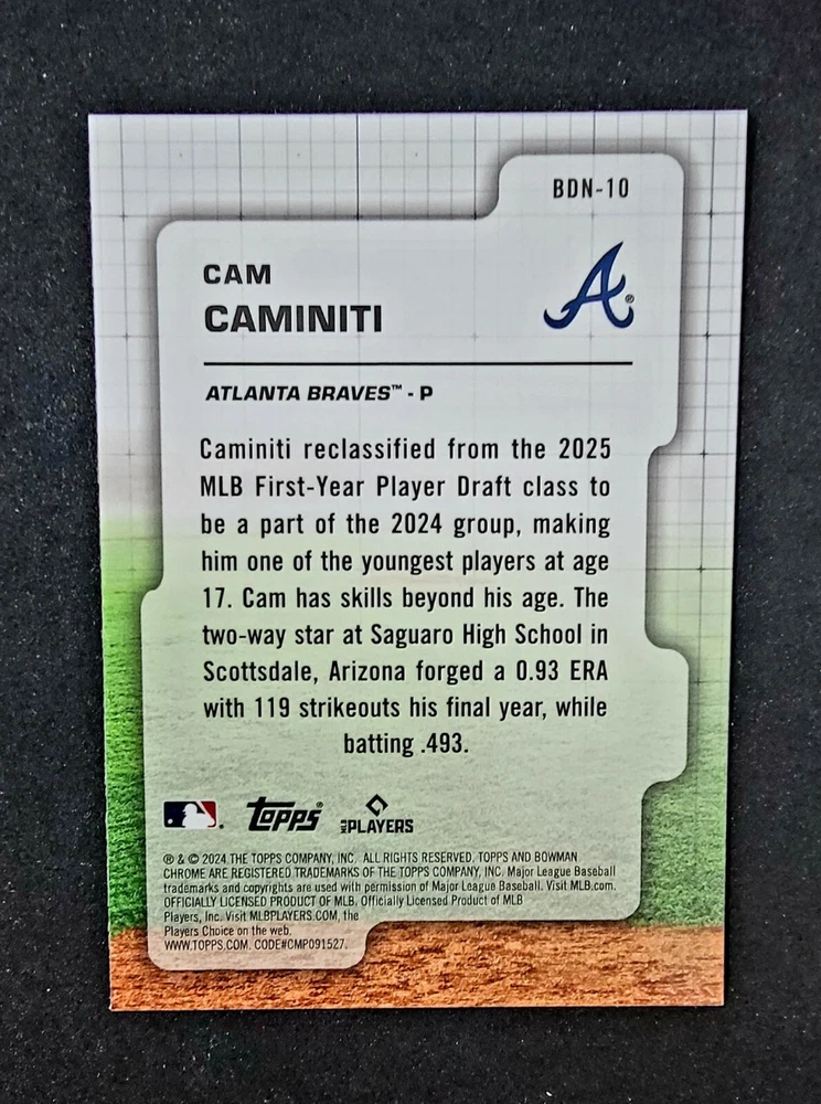 Cam Caminiti 2024 Bowman Draft Chrome Draft Night BDN-10 Atlanta Braves