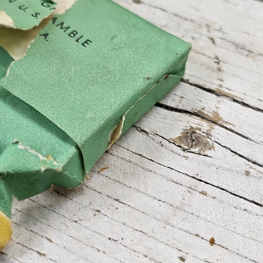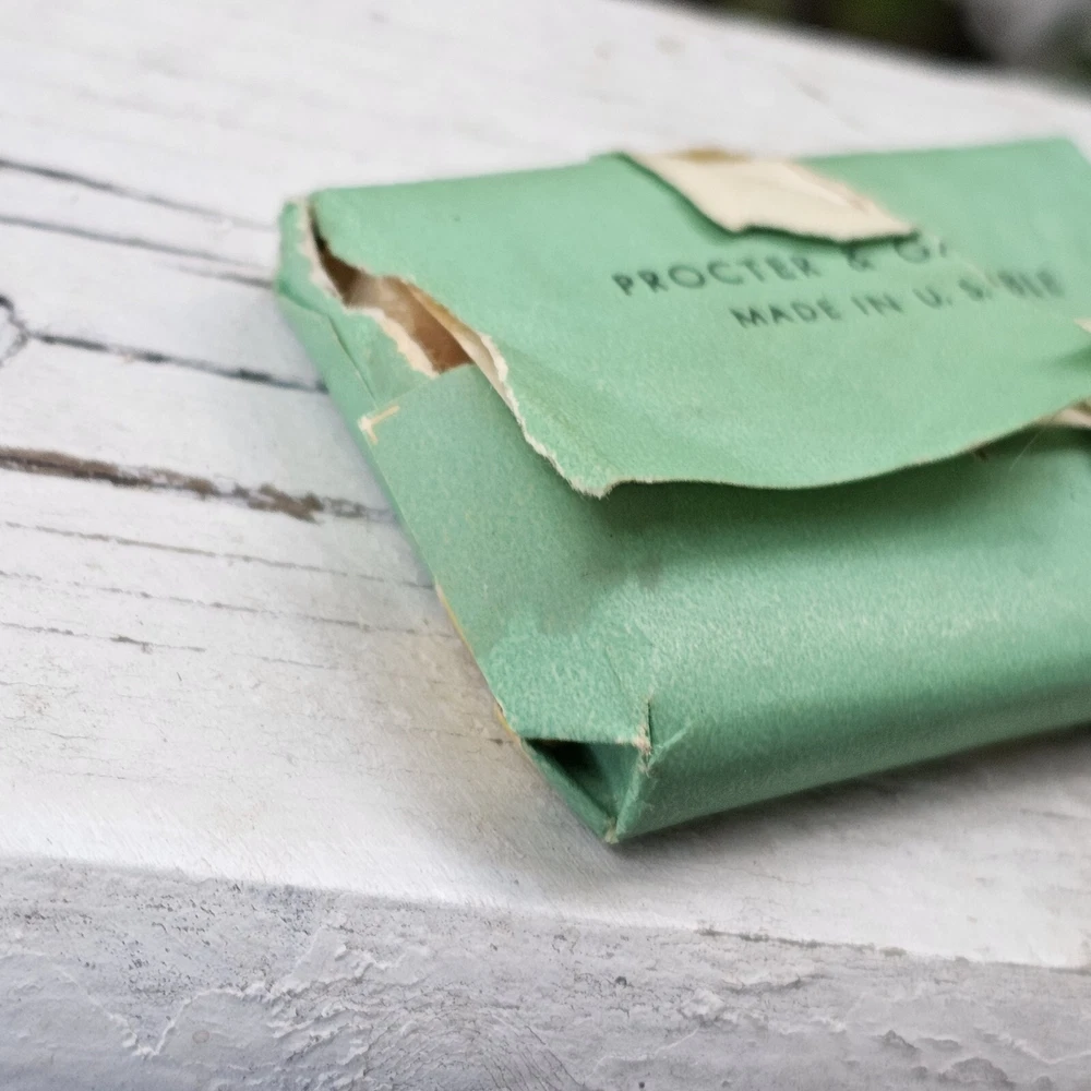 This vintage Camay Soap Proctor & Gamble stock is a great addition to any collection. Made in the USA in the 1930s, this old soap is a unique piece of history. The branding is still clear, and the fragrance is sure to transport you back in time. Perfect for collectors of soap and detergent memorabilia, or anyone looking for a unique vanity decor item. The packaging is torn, but soap is unused. See photos for condition