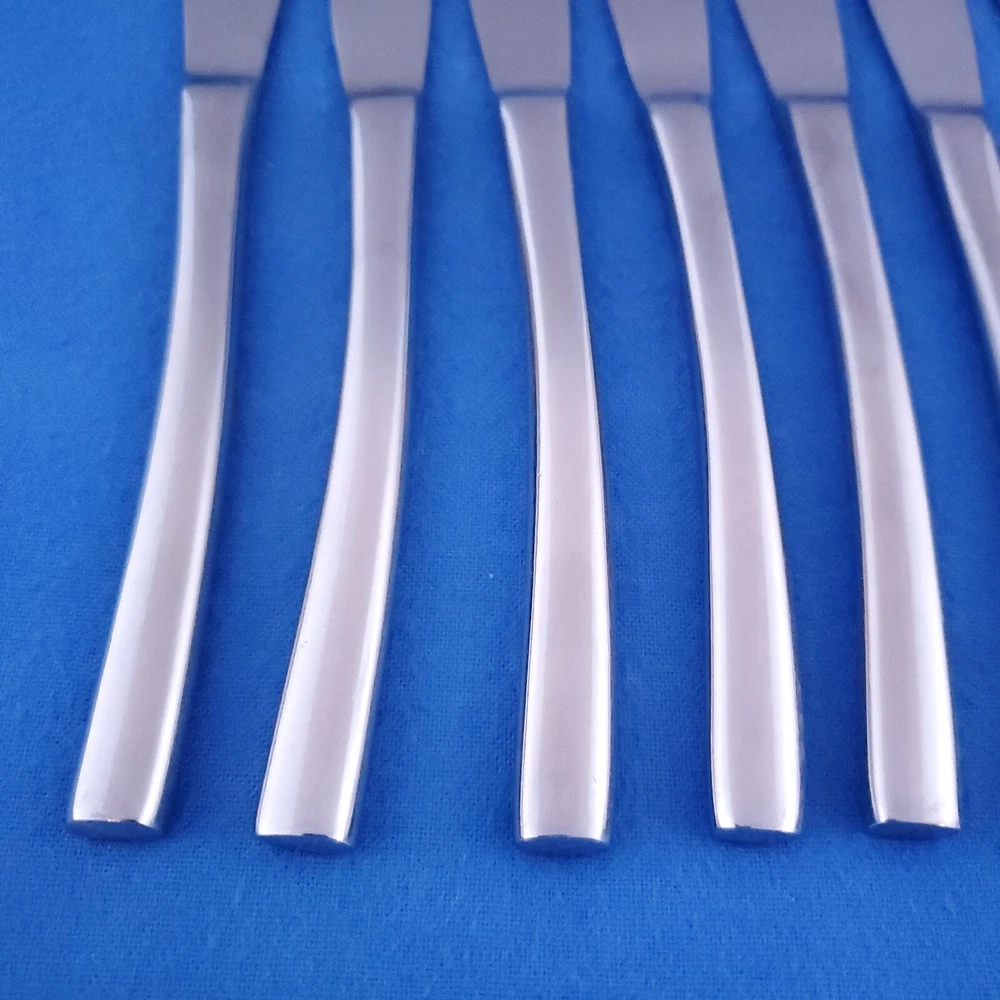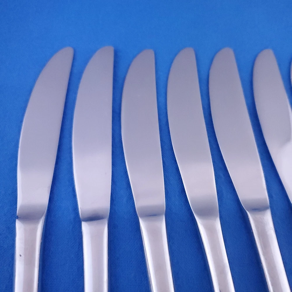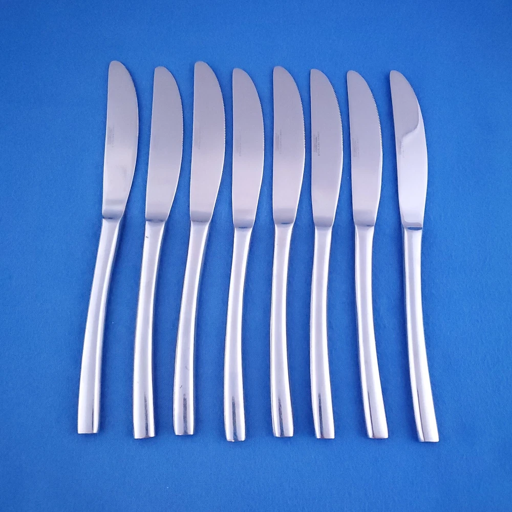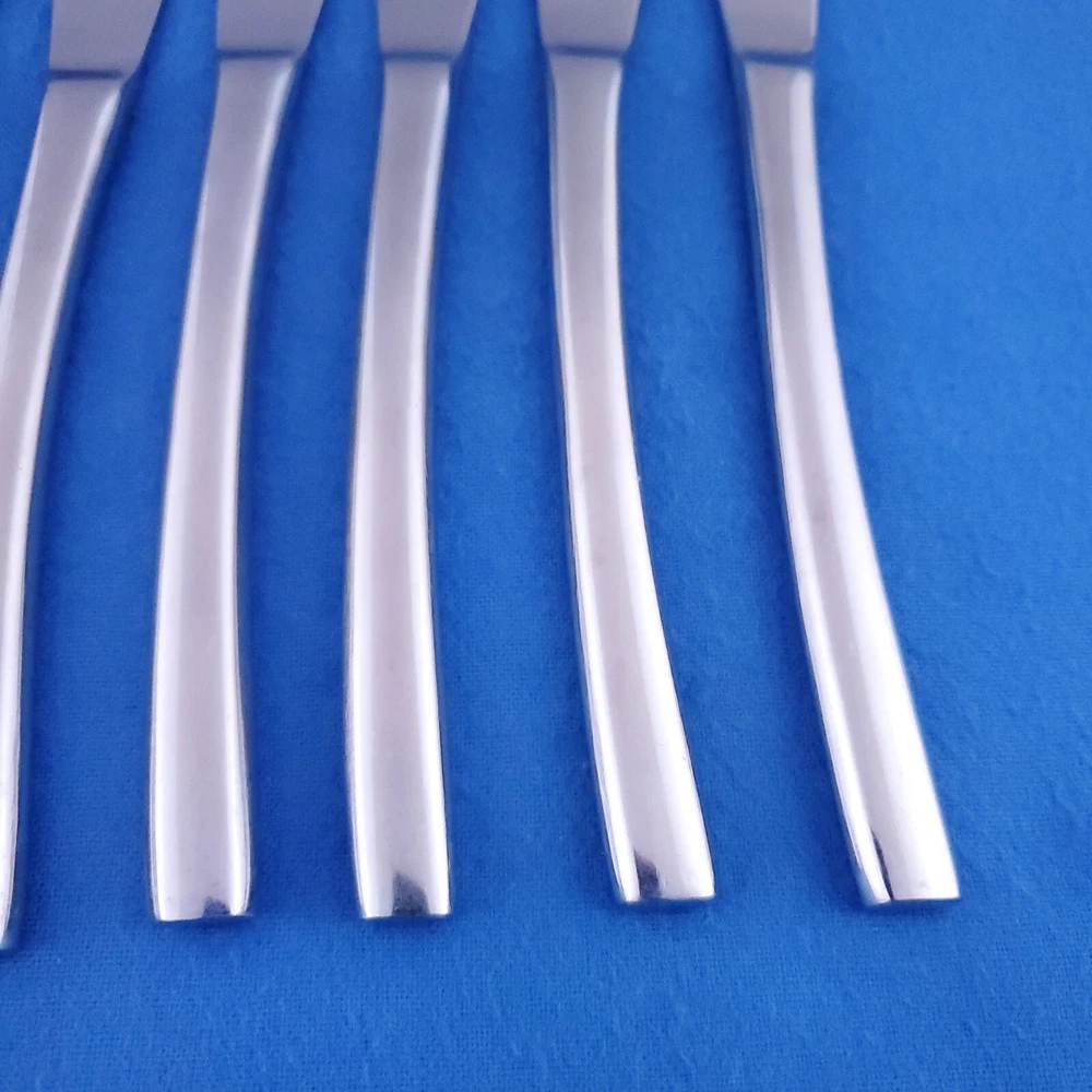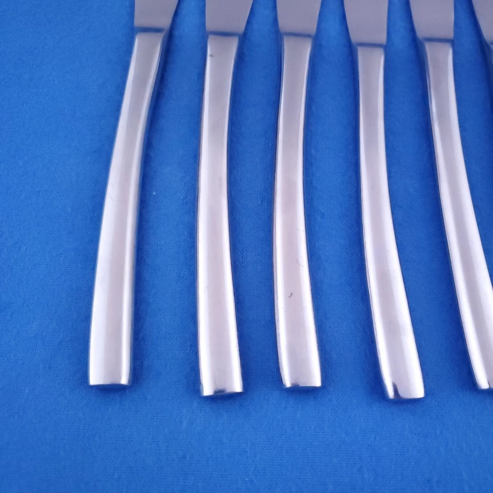Cambridge CBS114 Stainless ~ (8) Dinner Forks 9" ~ Flatware In Well Used condition. There are some nicks, scuffs and scratches consistent with daily use. *A Couple knives have small spots of pitting (see photos).* Please view the photos carefully for condition details. Don't forget to check out my shop for more pieces in this pattern. Thank you for looking! Have a great day!