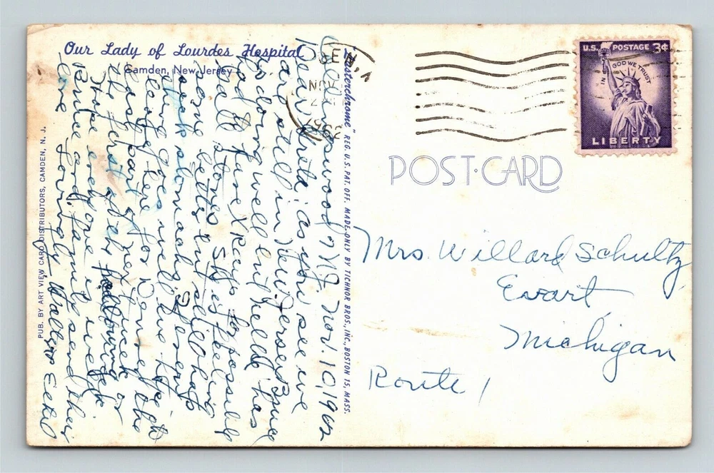 Camden NJ-New Jersey Lady Of Lourdes Hospital Classic Cars Chrome c1962 Postcard