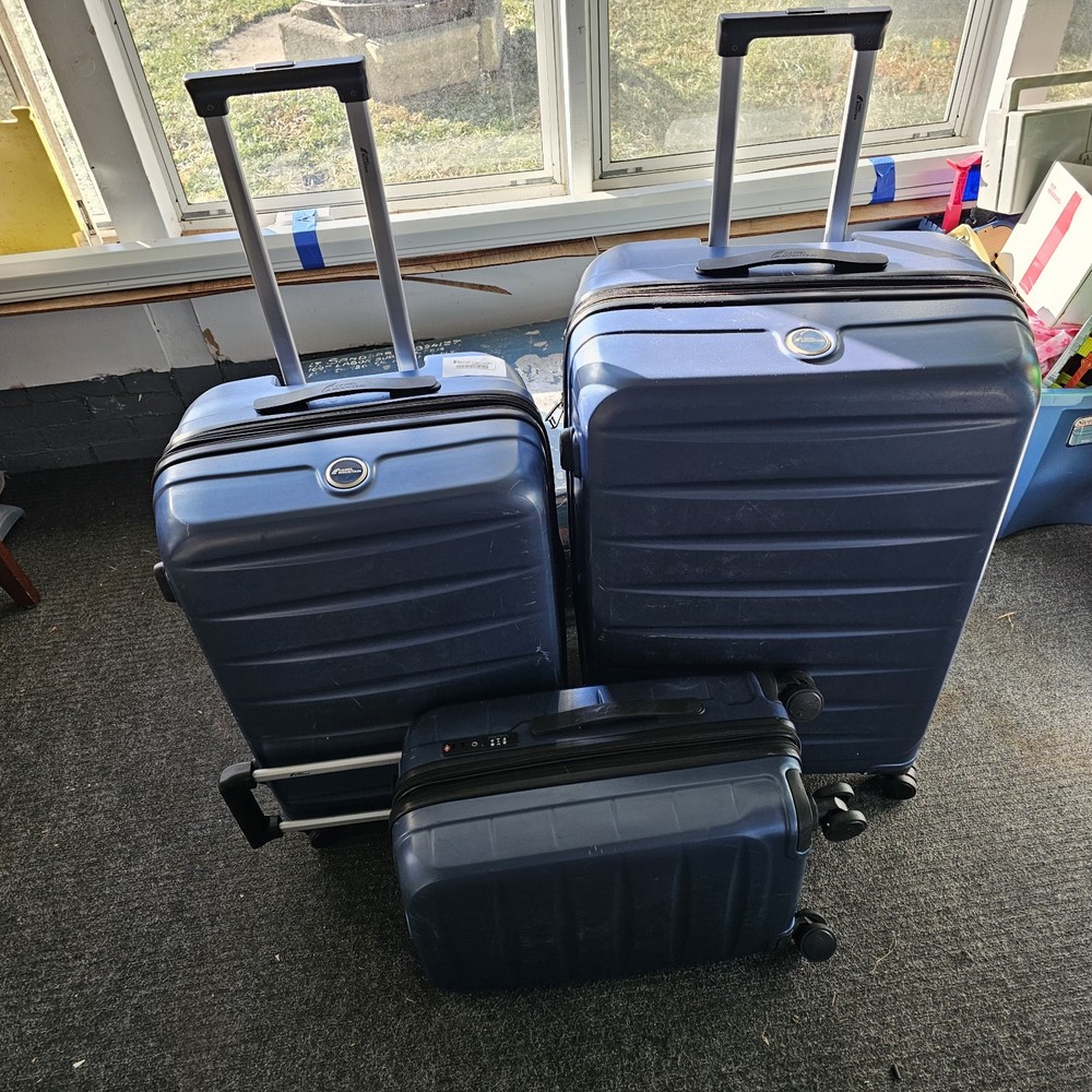 The Camel Mountain Set of 3 Blue Hardcase Spinner Suitcases is a stylish and practical travel set designed for both men and women. Made of durable ABS plastic, these expandable suitcases feature a solid blue color with a combination lock for added security. The spinner wheels make them easy to maneuver, while the hardcase design provides protection for your belongings. This set is perfect for travel enthusiasts looking for reliable and versatile luggage options.