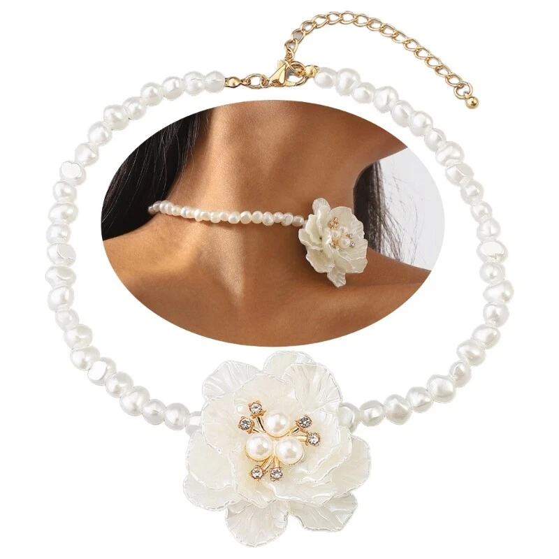 Camellia Flower Necklace Clavicle Chain Choker Imitation Pearl Necklace Jewelry Features: This clavicle chain necklace is Imitation pearl+rhinestone. Not easily fading, lightweight and comfortable to wear. They will be great clothing accessories, easy to matchs with different occasions. Fashion jewelry is very suitable for hip-hop, bands, parties, bars, dating, studio photos and videos. It is the best yourself, relatives, family, friend, sisters and colleagues. Stand out with our Camellia flower pearl choker Necklace that adds a bright of color to any outfit. Specifications: Imitation Pearl+Rhinestone Size: As Shown In The Picture Package Includes: 1x Necklace note: Please allow 1-2cm errors due to manual measurement, make sure that you do not mind before you order. Due to the difference between different monitors, the picture may not reflect the actual color of the item.