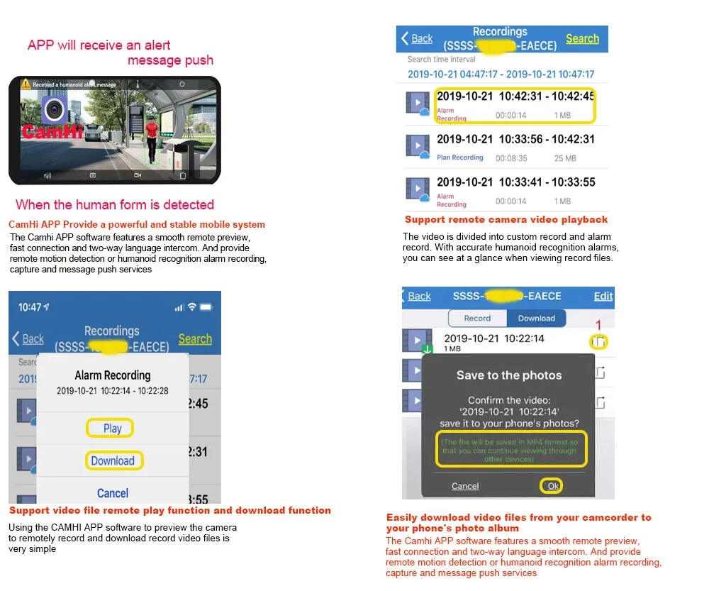 SAFE & SECURE SHOPPING 100% SATISFACTION GUARANTEED FAST SHIPPING Store Categories Store Categories Other IP Camera NVR You may also like Hikvision DS-2DE2A404IW-DE3/W(C0)(S6)(C) 4MP 4xZoom WiFi Mic PTZ IP Camera USA 152.0 USD Free shipping Hikvision DS-2CD2387G2P-LSU/SL 8MP ColorVu Panoramic IP Camera 2-Way Audio Black 209.0 USD Free shipping NEW Dahua PFB205W-E Wall Mount Bracket for IPC-HDW2841T-S IPC-HDW2441T-S Camera 89.0 USD Free shipping Dahua SD2A500HB-GN-AW-PV-S2 5MP Smart Dual Light WiFi PT Outdoor Security Camera 130.0 USD Free shipping Dahua OEM IPC-HDBW2831R-ZAS-S2 4K 8MP 5X ZOOM IR IP Camera Starlight MIC Dome 138.0 USD Free shipping Dahua IPC-HFW2441T-ZS 4MP Starlight 5x Zoom WizSense IP Bullet Camera PoE SMD+ 38.0 USD Free shipping Camera 8MP 36X POE Track IP Card 4k ZOOM CamHi Humanoid Speed Auto MIC IR PTZ Product Description You may also like Hikvision DS-2CD2387G2P-LSU/SL 8MP ColorVu Panoramic IP Camera 2-Way Audio Black 209.0 USD Free shipping Dahua 4K 8MP 180° Panoramic Dual-Lens TiOC2.0 IP Camera IPC-PFW3849S-A180-AS-PV 220.0 USD Free shipping Dahua IPC-HFW2441T-ZS 4MP Starlight 5x Zoom WizSense IP Bullet Camera PoE SMD+ 38.0 USD Free shipping Original HIKVISION DS-2CD2386G2-ISU/SL 4K 8MP AcuSense IP camera DarkFighter POE 179.0 USD Free shipping Dahua IPC-HDBW2431R-ZAS-S2 4MP 5x Zoom IP Dome Camera IR40m WDR IVS H.265+ PoE 139.99 USD Free shipping Dahua 8MP IP Camera IPC-HDBW2841E-S 4K POE Dome Camera WizSense IR Outdoor NEW 28.0 USD Free shipping DAHUA Brand 8MP 4K TiOC2.0 Full-Color 2Way Audio IPC-HDW3849H-AS-PV-S4 IP Camera 159.0 USD Free shipping Hikvision AcuSense 8MP 4K Outdoor Bullet IP Camera 2.8mm PoE DS-2CD2086G2-I NEW 165.0 USD Free shipping HIKVISION DS-2CD2043G2-IU 2.8/4/6mm 4MP PoE Bullet IP Camera +Mic audio Outdoor 27.0 USD Free shipping Dahua IPC-HFW2449TL-S-PV 4MP Full-Color IR WizSense IP Camera POE Smart-Light 29.0 USD Free shipping NEW ! DAHUA Brand Original 4MP IPC-HDBW2431F-AS-S2 MIC Dome IP Camera 2.8MM 92.0 USD Free shipping NEW Dahua PFB205W-E Wall Mount Bracket for IPC-HDW2841T-S IPC-HDW2441T-S Camera 89.0 USD Free shipping Dahua IPC-HDBW2431R-ZAS-S2 4MP 5X ZOOM Starlight IP Camera IR Dome Audio Alarm 124.0 USD Free shipping Dahua IPC-HFW3849T1-AS-PV-S5 8MP Full-Color 2-Way Audio SMD4.0 TiOC3 PoE Camera 205.0 USD Free shipping Dahua 8MP 5x Zoom IP Camera Dual Light Full-color+IR MIC SMD+ IPC-HDW2849T-ZS-IL 175.0 USD Free shipping DaHua IPC-HDW2449TM-S-IL 4MP HD PoE IP Camera Dual Light Audio IR IP67 MIC Color 96.0 USD Free shipping Hikvision 8MP ColorVu Smart-light 2-Way Audio PoE IP Camera DS-2CD2087G2H-LIU/SL 52.0 USD Free shipping Dahua IPC-HFW2449T-ZAS-IL 4MP Color 5x Zoom WizSense IP Camera POE Smart-Light 185.0 USD Free shipping Dahua 4K 8MP OEM IPC-HDW2849T-S-IL Dual Light Full Color+IR WizSense IP Camera 119.0 USD Free shipping Dahua 8MP 5X Zoom WizSense IR Starlight IP Camera MIC IPC-HFW3841T-ZAS-S2 SMD 215.0 USD Free shipping CamHi Wireless +POE 8MP 36X zoom 4MP humanoid Auto Track SONY IMX 415 PTZ Speed dome IP Camera build MIC speaker This is an automatic tracking camera based on human figure recognition. The camera supports a maximum resolution of 8MP, is equipped with a 36X optical zoom lens, and the maximum viewing distance is 200 meters. The camera supports horizontal 360° infinite rotation, equipped with 11 infrared lights, and the night vision distance can reach 100 meters. Using the new SONY IMX series, it can present excellent picture quality at night. Features of camera tracking function: 1. Support 360° infinite rotation 2. Support fixed-point tracking and cruise tracking 3. Support continuous tracking and limited time tracking (the time to complete a tracking action can be set) 4. Tracking speed can be set 5. Support humanoid trigger tracking (tracking will be turned on if the person is moving or not) 6. Support human figure recognition + motion detection linkage trigger tracking (people do not move, camera does not track) 7. Support tracking linkage sound alarm output 8, Support power off memory function Camera IP main function introduction: 1,The languages supported by IE browser are: English, French, German, Italian, Spanish and Chinese Mobile APP language support: Russian, English, French, German, Italian, Spanish and Chinese 2,Resolution support: 3840*2160 3,OSD display support: time display and location display settings. Channel name display and location display settings, and the channel name can be customized 4,DDNS setting: Support third-party DDNS domain name resolution service and our own domain name resolution service (you need to contact the seller to apply for free) 5, Human form recognition settings: Support human form recognition switch. Support humanoid frame setting, support humanoid recognition sensitivity setting. And supports two alarm modes of independent triggering and linkage triggering 6, Image parameter setting content 7, Motion detection settings: support 4 areas, and support each area to independently set the sensitivity 8, Video encoding settings: Support 50/60Hz, only support H.265 Mainprofile, 9, Support one browser window to manage multiple cameras, up to 9 cameras. 10, Support multi-angle humanoid recognition 11, Alarm triggers APP message push, and supports direct transcoding of video files to mobile phone albums for easy sharing with family and friends Electrical technical parameters Basic parameters ( P02H45LWP4T30 ) Chip solution SONY IMX415 Minimum illumination Color:0.03Lux @(F1.6,AGC ON);B/W:0Lux @(F1.6,AGC ON),0 Lux with IR Resolution frame rate Main stream: 3840*2160,20fps Substream: 1280*720,800X448, Video Encoding format H.265 Audio Encoding format G711/G712 IR night vision distance 100 meters White balance Auto Anti-flash mode 50HZ,60HZ,OFF IRIS Support Auto IRIS Focus mode Fully automatic, semi-automatic, manual LENS focal length 4.3-129mm,36X Optics ZOOM Zoom speed about 6 seconds (optical, wide-angle-telephoto) Horizontal-viewing angle About 65.5-5 degrees (wide ang