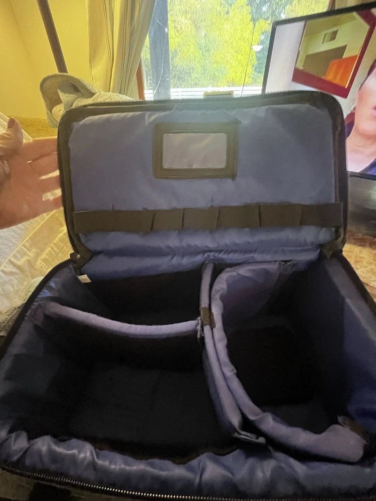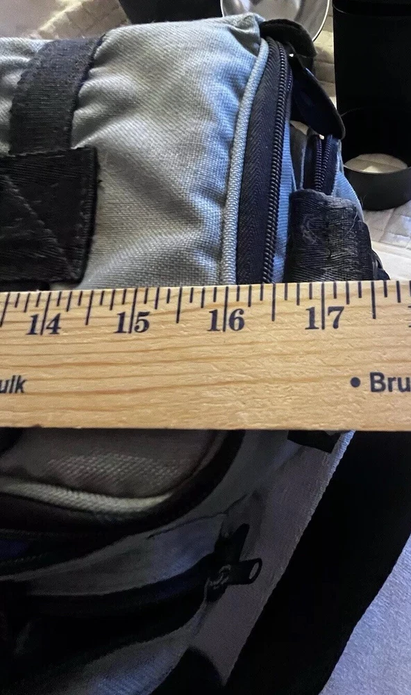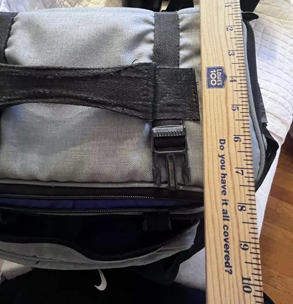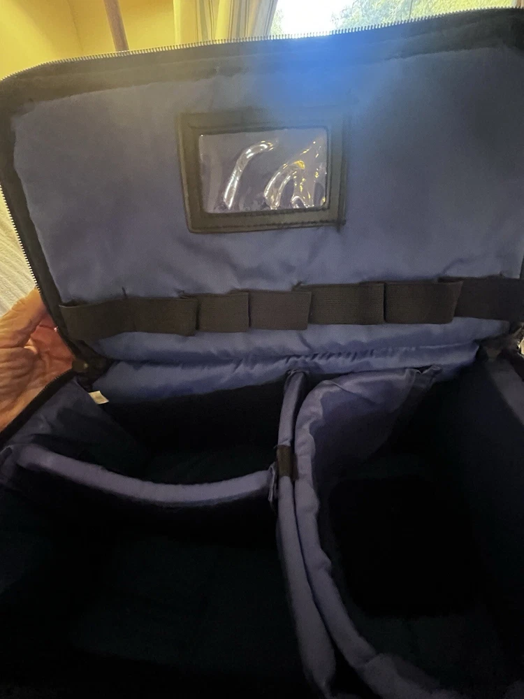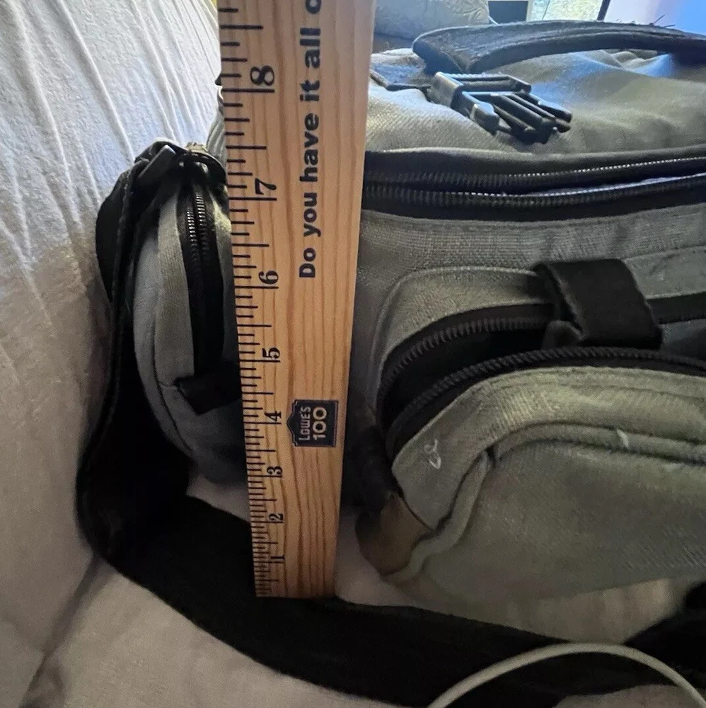 Padded camera bag. In good shape interior. Wear through use on outside. Straps and zippers in good shape, no holes that I see. Zipper pockets on front and sides. Pictures show the interior and exterior for a general idea of use. Nice clean cushioned interior with sectioned areas. Structurally great Thanks for looking!