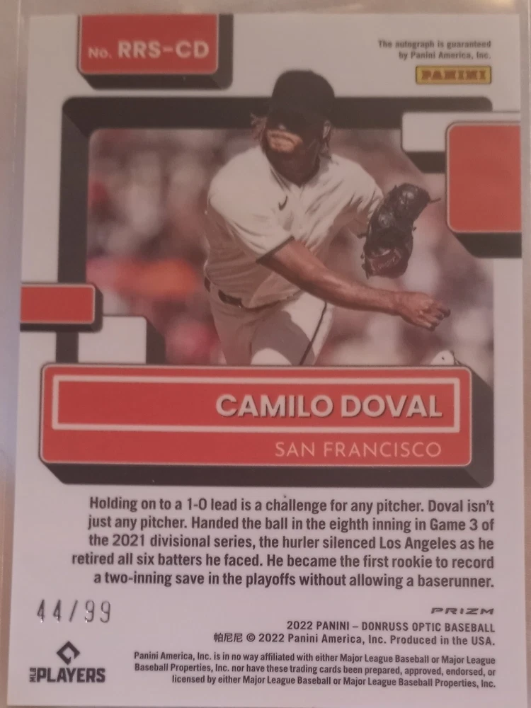 camilo doval 2022 Donruss Optic autograph 44/99. Condition is Ungraded. Shipped with USPS First Class Mail Large Envelope.