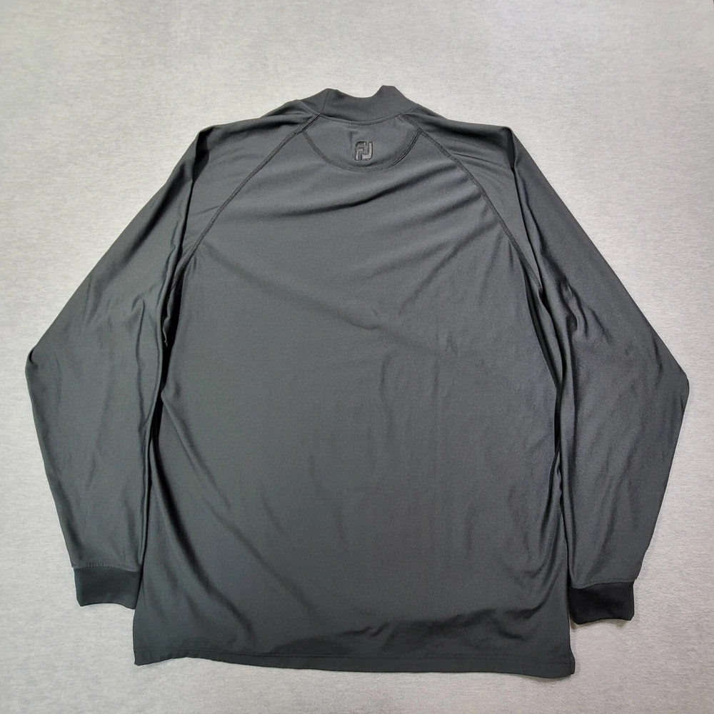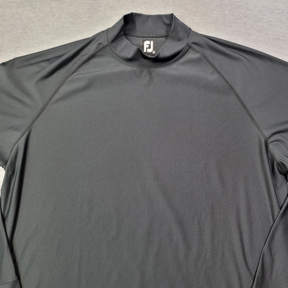 Crafted for comfort and performance, the FootJoy Men's T-Shirt is an ideal choice for those who value both style and substance. This 2XL black mock neck tee is designed with an athletic fit in mind, ensuring freedom of movement and mild compression to support your muscles during golf or other activities. The long sleeves and heavyweight fabric provide warmth and durability, making it a versatile addition to your activewear collection. The blend of polyester and spandex materials offers flexibility and a snug fit, while the solid black color ensures easy pairing with a variety of bottoms. The stand-up collar adds a touch of sophistication to the pullover style, making it a reliable option for any casual or athletic occasion. Enjoy the combination of functionality and sleek design in this essential piece from FootJoy's lineup.