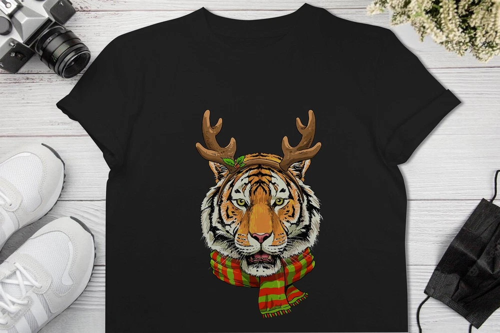 Camiseta Tigre Navidad Reno Cuernos Tigre Navidad