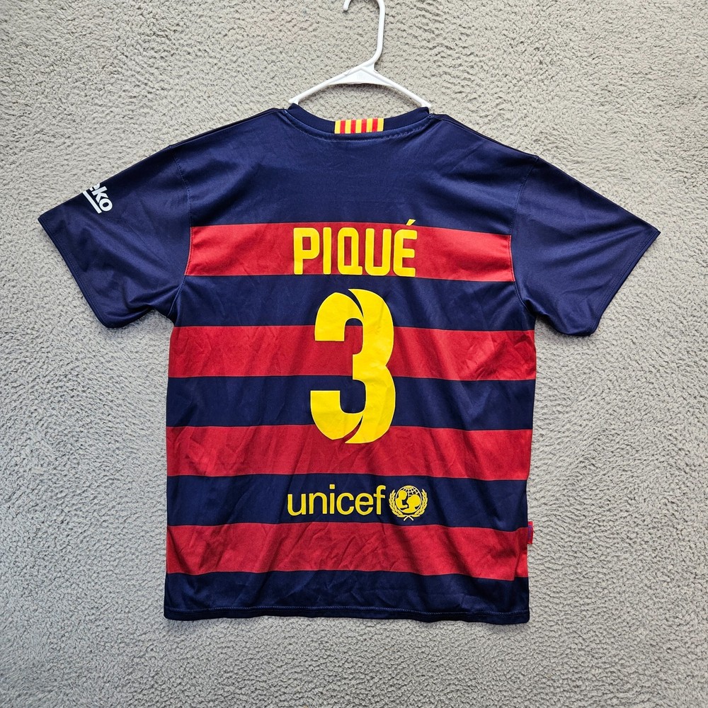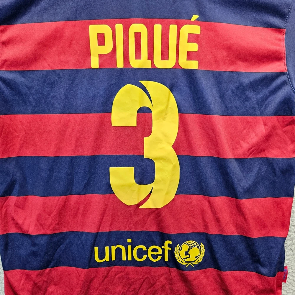 Tamaño: XL Longitud de la manga: Manga corta UPC: No se aplica Deporte: Fútbol Marca: N/A Reproductor: Gerard Piqué brand: N/A Género: Hombres Equipo: FC Barcelona gtin13: Does not apply Color: Azul/Rojo Estado del artículo: Usado Patrón: Rayas Producto: Jersey