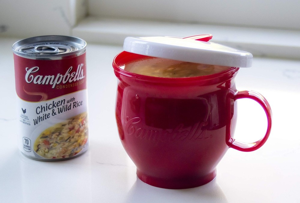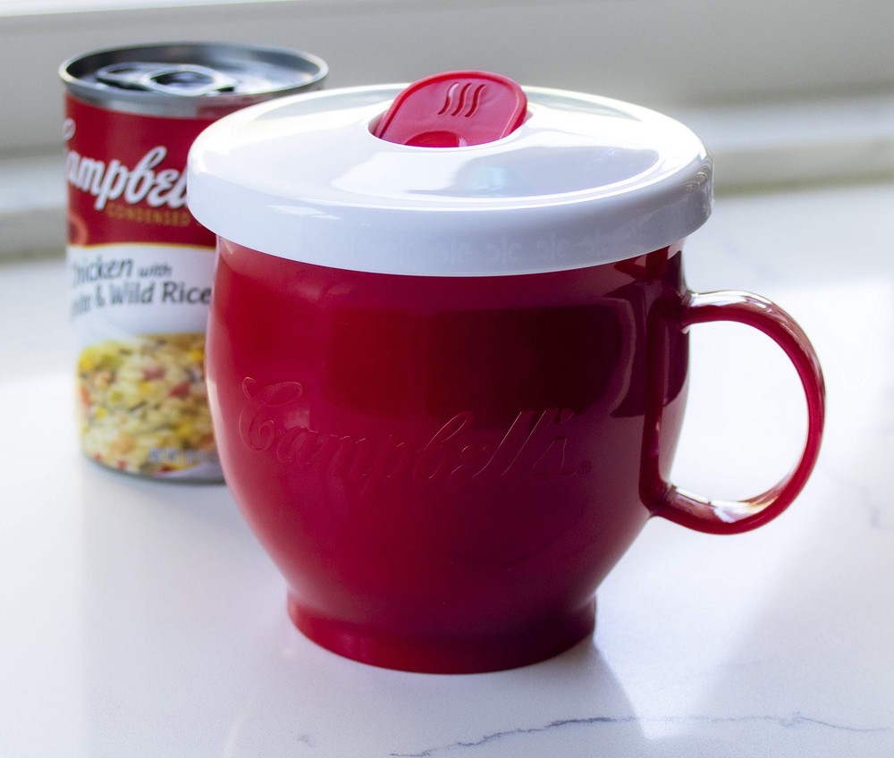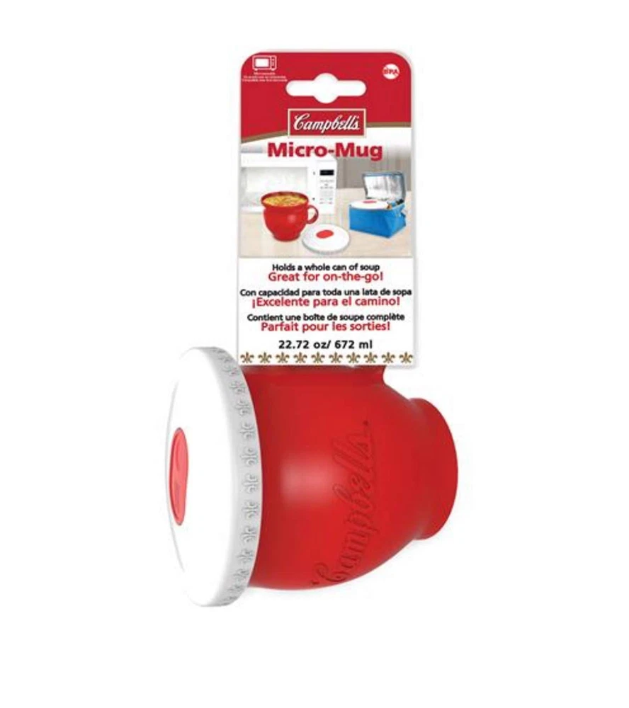SOUP ON THE GO: The Campbell’s Micro-Mug is the perfect way to take any type of soup on-the-go. It can hold up to 22.72 ounces which is a whole can’s worth of ready-to-serve soup. This mug is perfect for bringing soup to a chilly outdoor game, movie night, or a fast and convenient lunch at work. HANDY: Designed to be compact and portable, the Micro-Mug has an airtight and leak proof lid with a built-in steam release vent. The steam release vent will allow for a splatter-free heating in the microwave. Ideal for school, work, or while running errands. DURABLE: Constructed from tough plastic and is 100% BPA-free. The Micro-Mug is top rack dishwasher safe, microwave safe, and can safely be kept in your fridge or freezer. VIBRANT: Campbell’s Micro-Mug has a nostalgic and iconic red and white color scheme that is easy to find when you are ready for a warm, on-the-go mug of soup. A PERFECT GIFT: The Micro-Mug makes for a great gift to a friend or loved one who enjoys eating delicious soup, stew, noodles, and more. The useful design will make a great addition to everyone’s dishware collection.