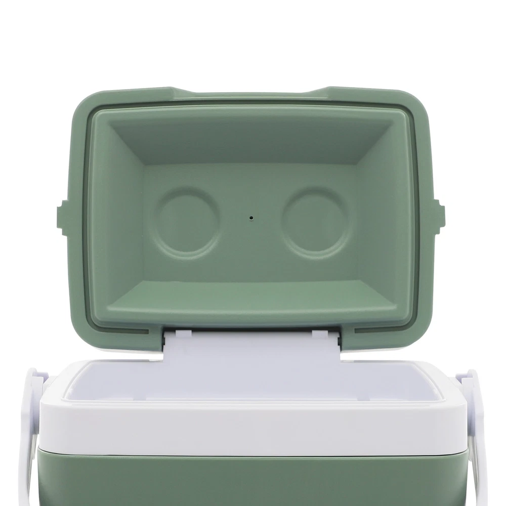 Shape: Rectangular Material: PP, PE, PU * Feature *: Compact Design,Unique Appearance,high reliability UPC: Does not apply Color: Green + White gtin13: Does not apply Brand: Unbranded Mounting Type: Freestanding Capacity: 8.5L/2.25Gal Type: cooler
