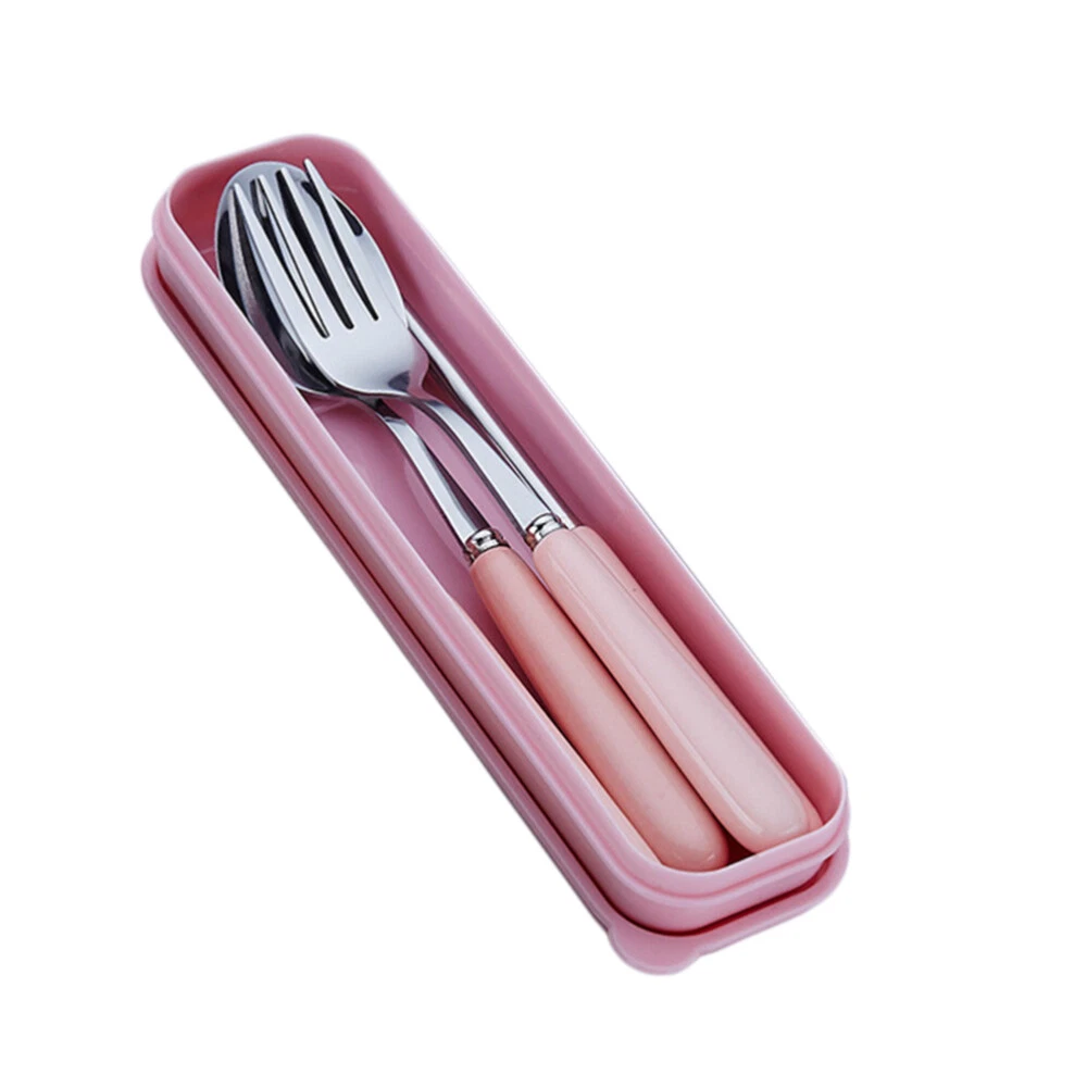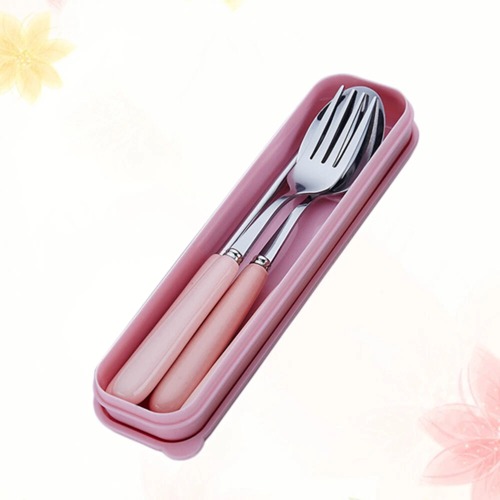 Camping Dinnerware Kit Metal Tableware Case Ceramic Handle Spoon