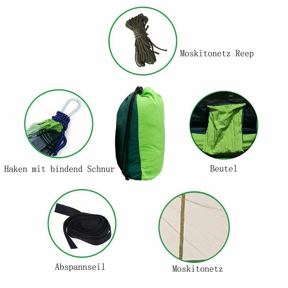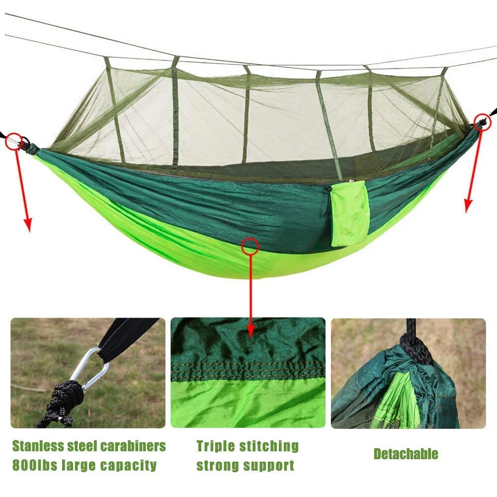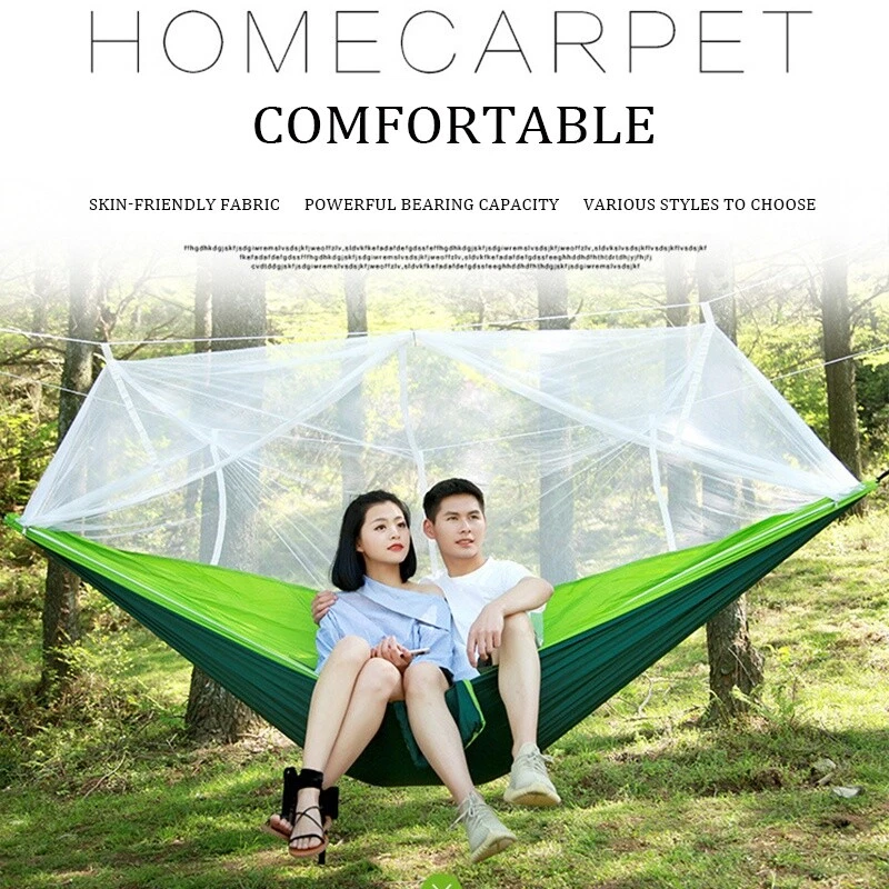 Double Camping Hammock with Mosquito Net 300×200cm Outdoor Nylon Anti-Rollover