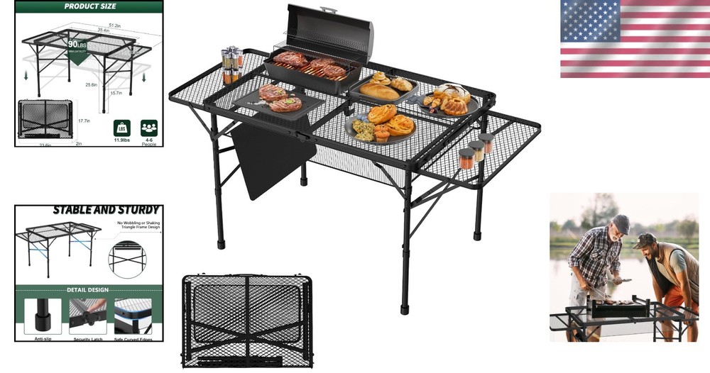 Camping Folding Table 3x2ft Metal Outdoor Picnic BBQ Mesh Storage Adjustable ‹ › ‹ › ‹ › ‹ › ‹ › ‹ › ‹ › ‹ › ‹ › Camping Folding Table - 3x2ft Metal Outdoor Picnic BBQ Elevate your outdoor experiences with our versatile Camping Folding Table, expertly designed for picnics, BBQs, and all your outdoor activities. Features: Tool-Free Assembly: Enjoy quick setup in seconds! Simply unfold and your table is ready for action. Folded dimensions are 23.6"L x 17.7"W x 2"H, and weighs only 11.9 lbs. Two Extension Boards: Maximize your tabletop space with reversible extension boards, perfect for accommodating drinks, utensils, and essentials. Easily fold up when not in use. Adjustable Height: Transform Your Table: With adjustable legs, easily switch between heights of 15.7 inches to 25.6 inches for your picnicking or cooking needs. Waterproof & Fireproof: Designed to endure the elements, ensuring confidence near water and high-heat appliances. Effortlessly clean with a simple rinse. Sturdy & Stable: Hexagonal leg structure secured with threaded connections, providing exceptional strength for all your outdoor endeavors. Enhanced Capacity: Features a detachable mesh layer and a side pocket for organization. Built-in cup holders ensure your drinks stay secure, offering a worry-free outdoor experience. Benefits: Perfectly portable for all your outdoor activities Versatile height adjustments for various needs Weather-resistant material for -round use Easy storage and transport Why choose our Camping Folding Table? Indulge in the convenience and reliability of our Camping Folding Table. No tools are needed for assembly, allowing you to focus on delighting in nature. Equipped with extendable side panels, adjustable heights, and reliable stability, this table is designed to enhance your outdoor gatherings, from picnics to grill parties. Don’t wait to enhance your outdoor culinary and social experiences—order your Camping Folding Table today and be prepared for every adventure! Shipping Free & Fast Shipping - We offer free shipping to most of the USA with a normal delivery time of 3-7 days. However, due to the current situation, additional delivery time (up to 3 weeks) may be required for some items. Alternative Carriers - We may use alternative carriers (e.g. USPS, FedEx, UPS, etc.) to ensure your package arrives safely and on time. Due to the use of multiple carriers, we are unable to provide a tracking number automatically. Handling Time - Orders are processed and shipped within 1-2 business days of receiving cleared payment. Shipping Restrictions - Shipping to Alaska, Hawaii, Puerto Rico, Guam, and other US territories may incur shipping charges or delivery restrictions. Please contact us before ordering, or your order can be refunded/cancelled. State Restrictions - There may be restrictions based on your state of purchase. For example, certain items may not be shipped to California due to state regulations. Contact for Tracking Updates - If you require tracking updates or have any concerns about the delivery of your order, please feel free to contact us, and we will be happy to assist you. Return 30-Day Hassle-Free Returns - We want you to be completely satisfied with your purchase. If you are not, you can return the item within 30 days of receiving it for a full refund or exchange. Easy Return Process - To start a return, simply contact us and we will provide you with a prepaid return shipping label and detailed instructions. Restocking Fee - There are no restocking fees for returns. However, the buyer is responsible for return shipping costs if the return is not due to a seller's error. Refund Processing Time - Refunds will be processed within 5 business days of receiving the returned item in its condition. Payment We accept all major credit cards, PayPal, and Apple Pay for your convenience. Your payment information is secure and encrypted to ensure a safe and seamless transaction. Please complete your payment within 3 days of purchase to avoid any delays in shipping. Feedback Your feedback is extremely important to us. We strive to provide the best products and customer service possible. If you are satisfied with your purchase, please take a moment to leave us a positive review. If you have any concerns or issues with your order, please contact us before leaving negative feedback. We are committed to resolving any problems and ensuring your satisfaction. Contact Us If you have any questions or concerns, please feel free to out to our customer support team. You can contact us through the eBay messaging system. We are available Monday to Friday, 9:00 am to 5:00 pm EST, and we will do our best to respond to your inquiry within 24 hours. Buy it now and enjoy a pleasant shopping experience! Folded Dimensions: 23.6H x 17.7W x 2L Item Height: 23.6 Inches Item Weight: 11.9 lbs Unit Quantity: 1 Frame Material: Metal Tabletop Material: Metal Set Includes: Assembly Guide Suitable For: Camping,Picnic,BBQ,Beach,Outdoor Features: Foldable,Height-Adjustable,Lightweight,Portable,Waterproof,Fireproof,Sturdy,Stable Type: Picnic Table Color: Black Weight Capacity: 77 lb