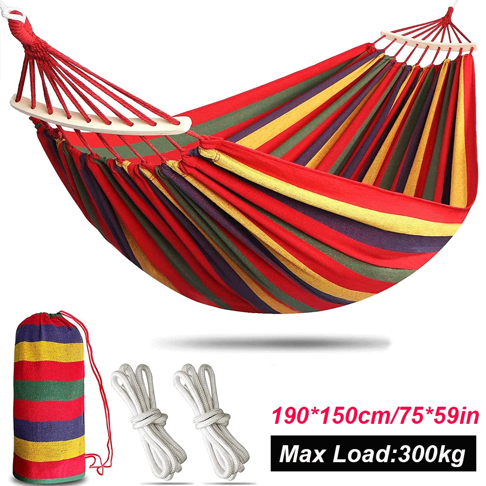 Camping Hammock Chair Bed Outdoor Hanging Swing Sleeping Garden Outdoor 1Person Features: COTTON HAMMOCK - Our camping hammocks are made of a special high-density breathable canvas fabric as material, crease proof, pleasant to looking and feels comfortable, the single and double hammocks can support 573 lbs EASY TO INSTALL - Quickly install the hammock and use the straps to hang the camping hammock on the tree or the hammock stand in 3 minutes. You can also quickly store the hammock and parts in the bag quickly PORTABLE HAMMOCK - Compacts to a backpack friendly, portable size for your convenience, you can take them anywhere PACKAGE INCLUDE - Includes one double camping hammock, two tree straps (each 7ft long). The double hammock is 75inch long by 59inch wide Package Included: 1x Hammock 2x Straps 1x Carrying Bag Payment Shipping Return Contact us About us Payment 1.Paypal, Credit Card, G Pay etc, many payment way is accepted. 2.Please be sure your shipping address is correct before make a payment. Shipping 1.We will ship out the item within 1-3 business days after comfirming the payment, appreciate your patience. 2.If the items are broken on the way( we will check the orders clearly before we sent them ),please contact us in 3 days you received it. We will send you a new one or refund your payment. Return 1.We stand behind every buyer.Items can be returned for exchange or refund within 30 days. 2.Please contact us when you have any confusion of our item, we will solve the trouble for you as soon as possible. Contact us 1.This is professional Seller.We will reply your message within 24 hours. 2.Please contact us whenever you have any question about the item. We will deal with it as soon as possible. 3. If you are unhappy with the item or our service,please Contact Us before leave feedback,just give me a chance,thank you! About us 1. Unless specified otherwise, all our products are IN STOCK and are shipped from Local warehouse - Not Overseas! 2. We provide a 30 day Satisfaction Guarantee or your money back (provided items are in the same new and resaleable condition.) 3. We have a PayPal Verified Business Account, please buy with Confidence! 4. Every item will be tesrted before send.We know our products well and if we don't have the answers we will do our best to find them for you! 5. Our friendly team look forward to serving you! Your satisfaction is our No.1 Priority We will do our best to satisfacy you. Brand Unbranded Type Camping Hammock Department Kids, Adult Manufacturer Warranty 1 Year Indoor/Outdoor Indoor & Outdoor Model Hanging Hammock MPN Does not apply Year Manufactured 2024 Features Double, Portable Material Canvas Seating Capacity 1-2 Weight Capacity 573lb