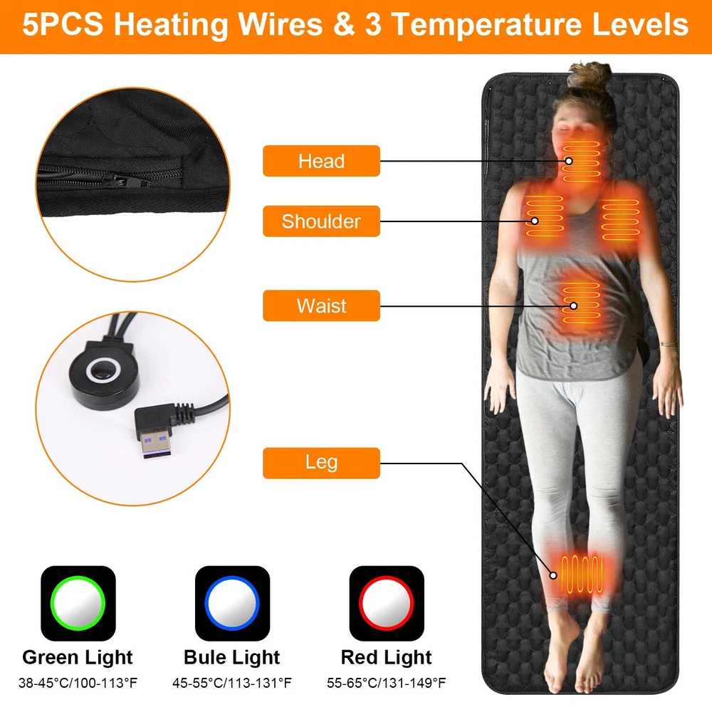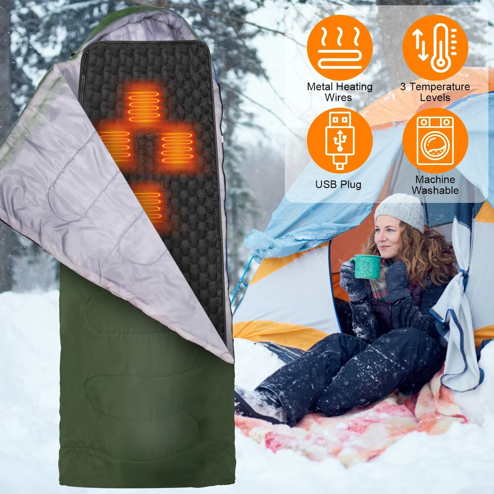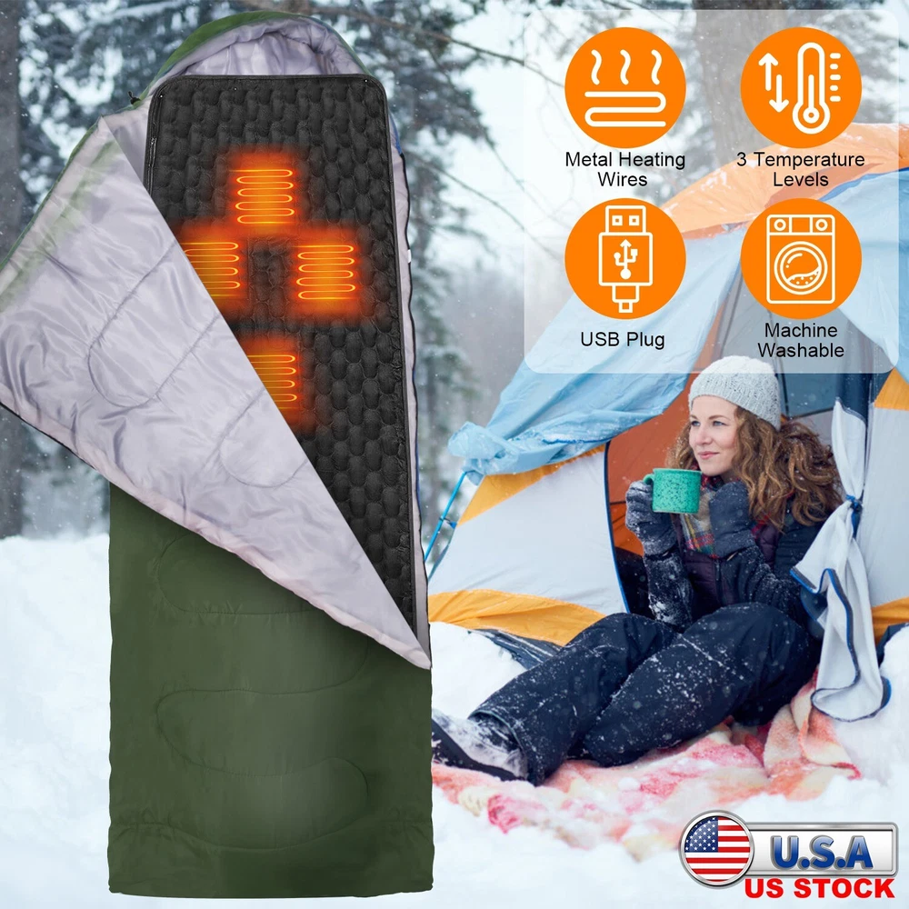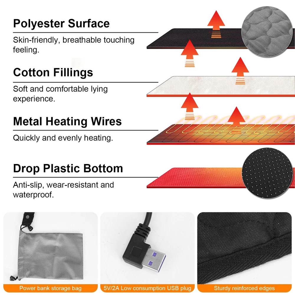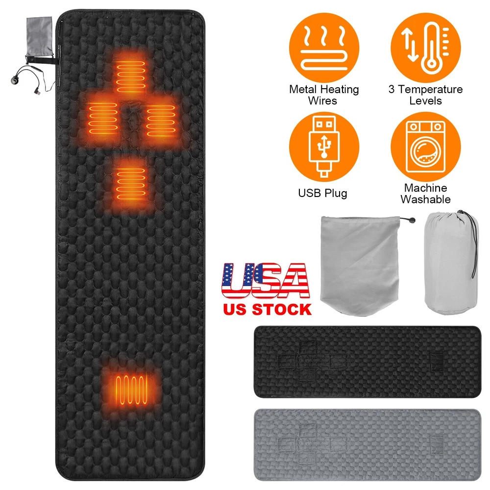 Camping Heated Sleeping Bag Pad -Battery Powered Heated Blanket USB Heater