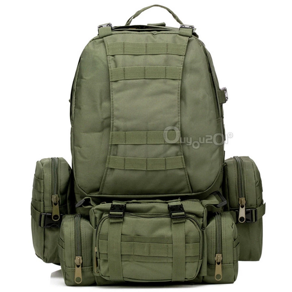 Camping & Hiking Backpack Large Rucksack Detachable Bags Military Molle Pouch Description : The Backpack is constructed with waterproof 600D Nylon material. Molle design, molle belt on the fornt and two sides. Come with a zipper outside pocket and a big mesh compartment in it With 3 detachable molle pouches attached on front and two sides. Large cargo with a big compartment in it. Come with a hand carry strap and adjustable shoulder strap. Wide & thick waist belt, comfortable for heavy carry. With adjustable chest belt. Specification: Material: 600D Military nylon Weight (approx): 1700g Main Compartment (approx): 19.7"(50cm) High x 13"(33cm) Wide x 8.7"(22cm) Deep Front Pocket (approx): 5.1"(13cm) High x 12.6"(32cm) Wide x 3.9"(10cm) Deep Side Pocket (approx): 7.9"(20cm) High x 4.7"(12cm) Wide x 2.4"(6cm) Deep Color: Black, Mud, Jungle camouflage,Green, Jungle digital, Desert digital,CP camouflage,ACU camouflage,Ruins green camouflage,Mang pattern mud,Mang pattern green for your choice Package include: 1 x Backpack Set (include two side bag and one back bag) Payment Delivery details Terms of sales About us Contact us Payment We use eBay Managed Payments Secure and more flexible payment options via the eBay Managed Payments. Please pay as soon as possible after winning an auction, as that will allow us to post your item to you sooner! Delivery details Item will be shipped within 1-3 working days after received payment. USPS : USA 7-15 working days to arrive Air mail : 15-25 working days to arrive(other countries) Express Delivery: 7-10 working days to arrive NOTE: When you urgently need your items on time, we can ship it out by Express Shipping, but you need to charge extra fees. Terms of sales 1. We fully guarantee our items. All items are in brand new condition unless specified otherwise elsewhere in the description. 2. All returns - defective or otherwise - have to be preauthorized. Please contact us to get an authorization and returning address before sending the item back. All returned items must be in the original packaging within 30 days, the buyer must tell us the tracking number and ebay ID. 3. In all cases, buyers pay shipping fees at their own cost to return products for exchange or refund. We will be responsible for the postage of replacements. About us 1. Our aim is to provide Top Level Customer Service, so we will try our best to solve any problem. 2. If you have any questions, please feel free to email our service specialists 24 Hours a Day, 7 Days a Week.We will reply you ASAP. If no response within 24 Hours, please check the spam in your mail box. 3. We greatly appreciate your POSITIVE feedback. Our system will automatically leave you very good feedback after your payment completed. Contact us If you have any question or needs, please let me know.We will reply to you within 24 hours. I look forward to your positive feedback and 5 stars. Thank you.
