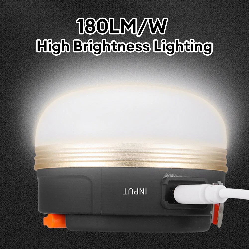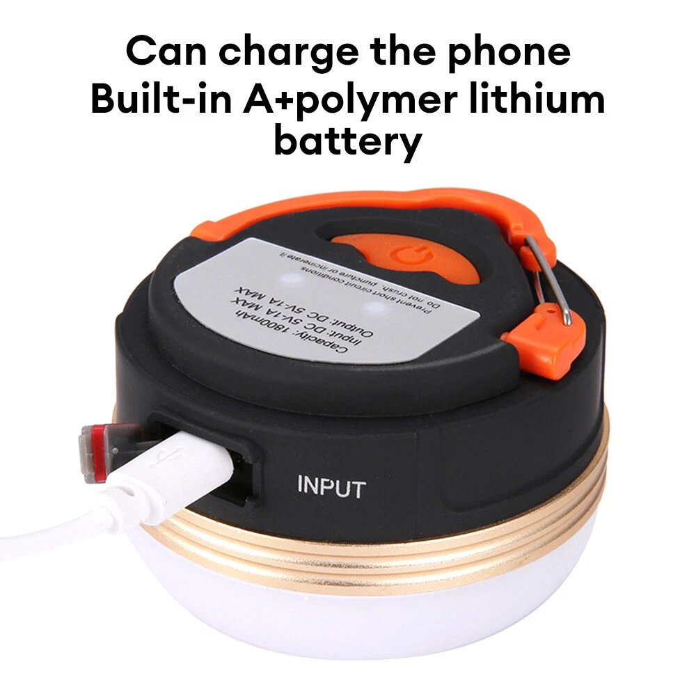 Features: 【 Excellent Lighting 】 5 high-strength LED chips with a high output of 300LM. The frosted sphere emits a large amount of light, providing a wide field of view and easily illuminating the entire room. Just press and hold the button to adjust the amount of light, and there are three lighting modes available: strong light, weak light, and flash mode to meet your different lighting needs. 【 Lightweight and Portable 】 This small camping light weighs only 4.46 ounces - compact, lightweight, space saving, and easy to carry, making it the perfect travel size. Multifunctional foldable hook, can be hung on tents or trees, has magnetism, can adsorb metal surfaces, and liberate hands. The extremely lightweight design is also suitable for young children, making it an excellent gift for those you love. 【 Charging and Mobile Power Supply 】 Built in 1800mAh lithium-ion rechargeable battery with USB charging, no need to replace the battery. After being fully charged, the continuous lighting lasts for more than 6 hours. Camping lights can also be used as mobile power sources to charge mobile phones in emergency situations. 【 Durable and waterproof 】 Made of high-quality ABS material, it has low power consumption, ensuring long-term durability and is waterproof, heat-resistant, and freezeproof, and faultless in harsh environments. Perfect for indoor or outdoor activities. 【 Multi purpose 】 An essential survival equipment for outdoor activities, perfect for camping, hiking, fishing, hunting, or night walking. Perfect emergency light for home power outages during hurricanes and storms. No matter where you live, everyone needs this reliable light. Specifications: Name: Multifunctional rechargeable tent light Material: ABS plastic+aviation aluminum alloy Light bulb: 5LED (COB) Light source: Warm light (4000k) Function: Strong light weak light burst USB output Power supply: Rechargeable lithium battery 1800mah Product specification: diameter 78mm, height approximately 45mm Features: 1. Emergency lighting, night lighting, outdoor leisure, camping, hiking, hunting, mountaineering, fishing, reading, etc. 2. Multipurpose LED camping lights, emergency night lights, desk lights, wall mounted lights, safe and energy-saving storage; Portable high brightness. 3. Used for camping, reading, dining tables, walls, boating, fishing, car repairs, etc. Product List: Camping light * 1 Charging cable * 1