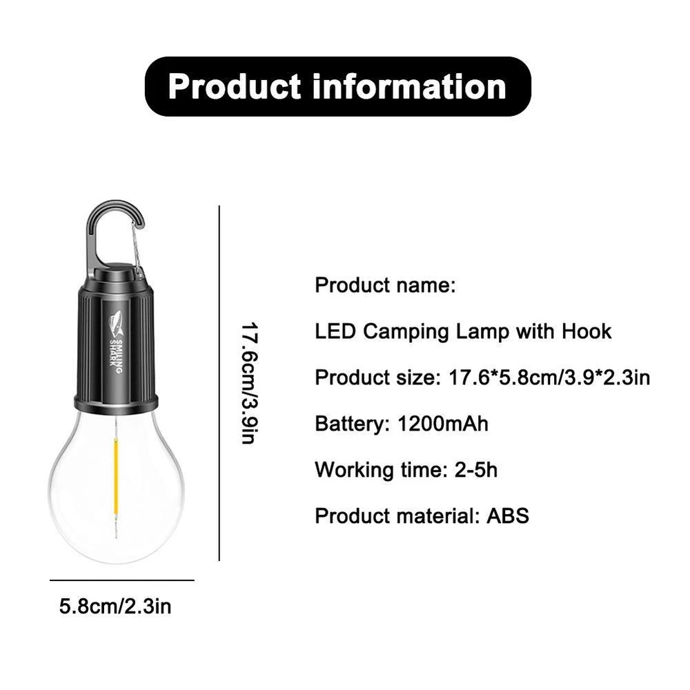 Description Description&Preview shipping&policy Description: Product name: LED Camping Lamp with Hook Product size: 17.6*5.8cm/3.9*2.3in Battery: 1200mAh Working time: 2-5h Product material: ABS Product features: 1.Versatile: This outdoor camping lamp is perfect for camping, hiking, emergency situations, night markets, and even home use. 2.Rechargeable: The tungsten filament camping lamp can be easily recharged, making it a convenient and eco-friendly option. 3.LED Bulb: Equipped with an LED bulb, this camping lamp provides bright and efficient ensuring you have a clear view of your surroundings. 4.Portable: Lightweight and compact, this camping lamp is easy to carry and store, making it an ideal choice for outdoor enthusiasts. Precautions: 1. As we all know , the different computers display colors differently, the color of the actual item may vary slightly from the following images. 2. If you feel difficult to choose the size, you can feel free to contact me we will give you some suggestion, but it is for you reference only. Package includes: 1 pc Lamp Preview: Thank you for your purchase Problems? You can follow below process to contact us. There is a time zone difference,but we will do our best to quickly response to your questions: Shipping ● We will arrange shipping for you within 24 Hours after payment cleared except the holidays. ● We always send the item to the address you give us on Payoneer to ensure the security of the item. If you have changed your address, or want us to ship to another address, please change to the new address when you pay us with Payoneer, otherwise we will not be responsible if the package is lost. Payments We accepts Payoneer only If you have any questions about the payment,please contact us through eBay message. Import Duties In case some duty is due Upon delivery, it is your responsibility to meet that expense and this may cause delays to delivery schedule and you may have to pickup goods at the customs office. Terms & Conditions By bidding on this item,the Buyer agrees to all of the terms and conditions as outlined in this listing .please ensure to read and agree to All eBay terms and Conditions before bidding. All pictures are for illustration purpose only and Colours may vary slightly. Our store obeys all eBay Rules and Policies. Returns Policy To Return an item you must contact us and take photos of your item to clearly show any damage or unusual aspects of it. Approved returns will be subject to inspection on arrival. Items must be returned in original condition with all original packaging. All shipping and handing charges are non-refundable Return delivery costs are the responsibility of the buyer. We will cover the cost if sending replacement/repaired items. Within 7 days after receiving your products, we offers a no-hassle 7 day exchange/replace only if your items are found to be defective by manufacturer.