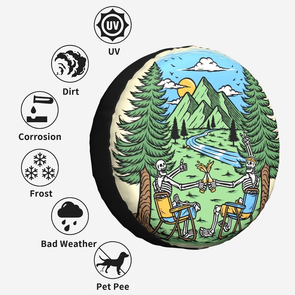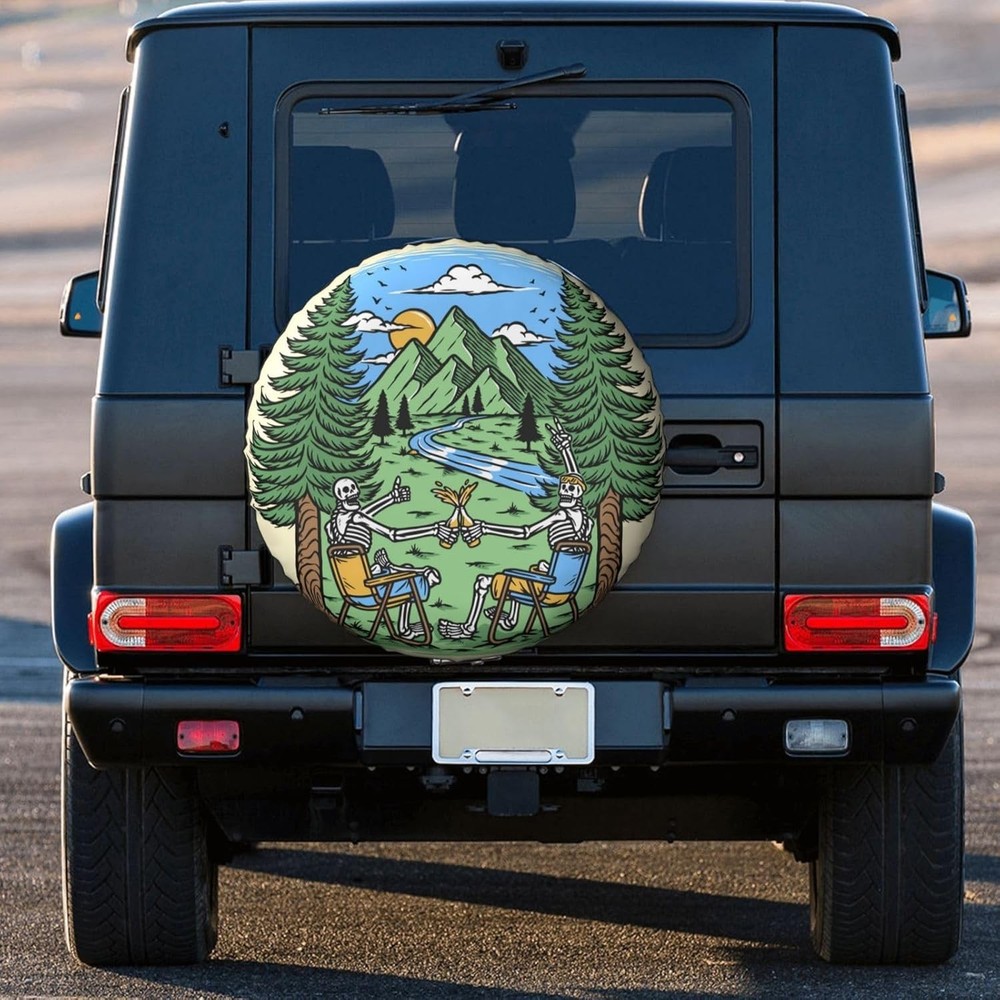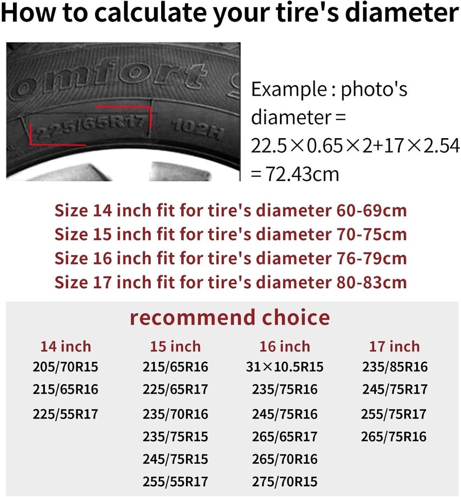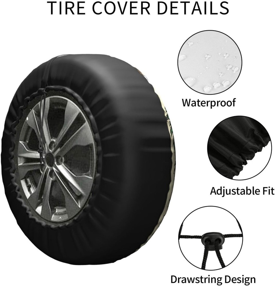 About this item Material: Waterproof, Strong Wearability, Wipe-Clean Polyester, Helps Guard Against Sun, Rain, Mud, And Other Elements. Wide Application: Our spare tire cover for trailers is suitable for trailers, RV, SUV, off-road vehicle, camper, and trucks, or any other tire with the corresponding Package Dimensions. Easy to install and remove: The spare tire cover for trailer tires is easy to store, will not take up too much space, and features a flexible tether for quick installation without any tools. Note: Our Wheel Protectors Covers are designed to fit various tire Package Dimensionss. Please refer to the picture for detailed Package Dimensions information so you can determine the correct fit without measuring tires. Package Dimensions: 5.04 x 4.33 x 1.85 inches.