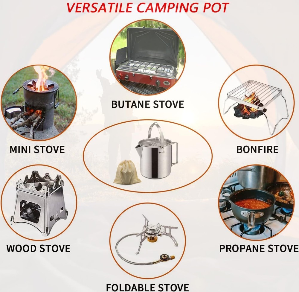 100% Money Back Guarantee if you are not satisfied with your purchase! ____________________ Description: Camping Tea Kettle, Portable 1.2L Coffee Pot, Outdoors Camping Pot, with Handles and with Lids for Camping Hiking Picnic Camping, Backpacking, Silver STAINLESS STEEL PICNIC WATER BOTTLE: Camping Pots are Forged from Stainless Steel, Stainless Steel Camping Kettle is Thicker Than Other Kettles, Which Can Stand High Temperature and Have a Great Corrosion Protection. Making it Perfect for Camping Trips and Other Outdoor Activities. OUTDOOR CAMPING TOOLS: 3-in-1 Design, Suitable for Outdoor Picnics, Make tea & Coffee. Coffee Maker Helps you Attain your Caffeine Needs and is Great for Use on Stove Tops And it is Also can be Used as a Hanging Pot for Campfire Heating to Make Soup and Noodles. The Collapsible Handle and Handy Design Makes all the Accessories Perfectly Fit in Backpack. COMPACT SIZE & LARGE CAPACITY: There are 300ml/500ml/700ml Scale for Accurate Measuring. Clear Scale, Large Capacity, The Full Capacity is 1.2L, However, a Capacity of 0.7 to 0.9L is Recommended to Prevent Water from Overflowing When Boiling. VERSATILE CAMPING POT: This is Essential Camping and Jungle Survival Gear for Boiling, Cooking and Steaming. Lts Versatility Makes it a Must-have for Any Outdoor Enthusiast. ___________________ 100% Money Back Guarantee: We offer 30 Day Money Back Guarantee from the day you purchased if you’re not satisfied with your product. If you have any questions about our products, please contact us as soon as possible. Customer satisfaction is our absolute priority. Shipping: We are always working hard to ensure your package arrives as soon as possible. Please understand that some factors like weather, high postal traffic, and the performance of shipping companies are outside of our control. We offer free shipping to the lower 48 states and ship within 3 business days of payment, usually sooner. We do not accept P.O. Boxes. Please provide a physical address. You will be notified via eBay messages as soon as your items ship. Delivery: We will ship out the item in 2-3 working day after receiving the payment. Usually the delivery takes 2-5 business days. If you don't receive the items after 10 days, please feel free to contact us. You will get a replacement or a full refund. Please DO NOT open a return request or leave negative feedback without asking for help. Returns (Get Free Return Label): We offer a 30-Day Return Policy on defective/wrong items or items which you are not completely satisfied with. You have the option for a full-refund or an exchange of the item. No need to buy eBay return label. Contact us via eBay messages and get free return label. Returned items must be in all of the original packaging and include all of the original accessories or items that came with it. The item and package should be in original condition. Contact Us: Any queries or issues incurred, please feel free to contact us via eBay message, we will get back to you within 24 hours. Please DO NOT open a return request or leave negative feedback without asking for help. Feedback: Your feedback is very important to us. After you get your package and you are satisfied with our service, please leave us positive feedback. We are highly appreciated for your POSITIVE feedback and 5 stars. Enjoy shopping.