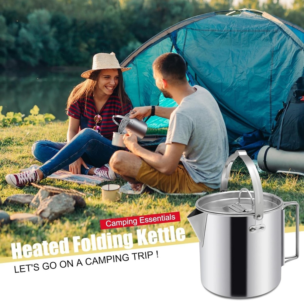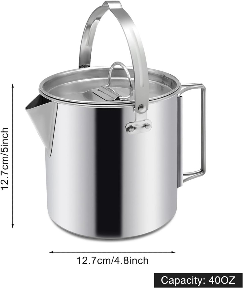 Camping Tea Kettle, Portable 1.2L Coffee Pot, Outdoors Camping Pot, with Handles