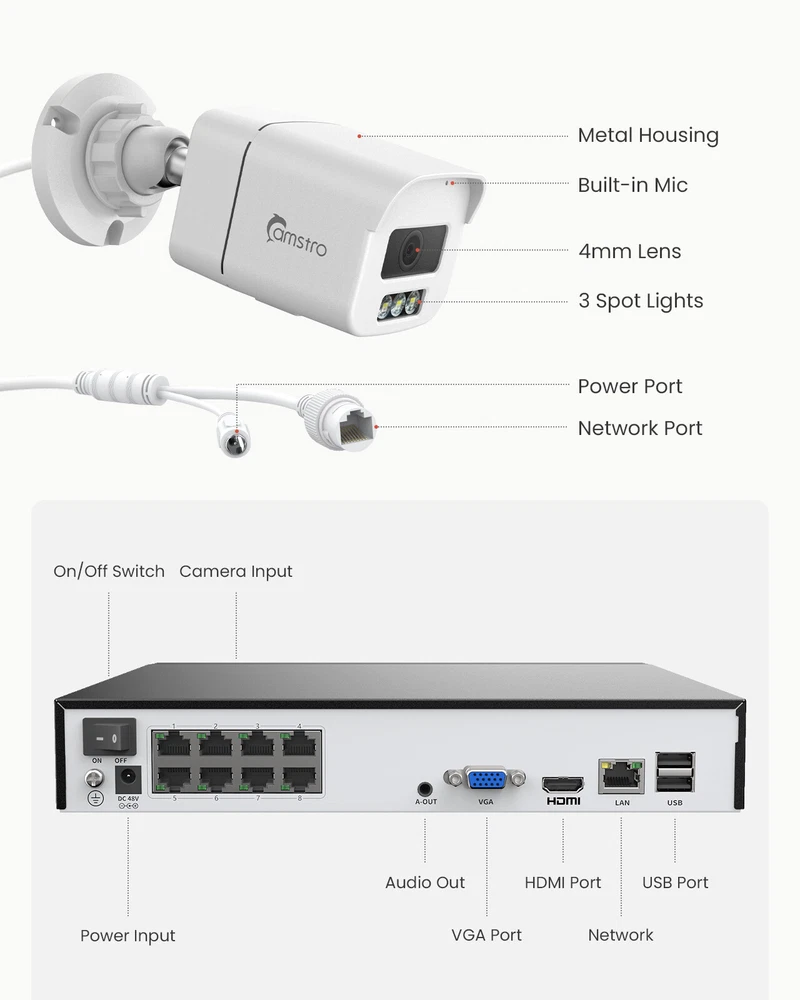 Camstro 8MP 8CH 4K POE AI Security Camera with 2-Way Audio for Outdoor Surveillance