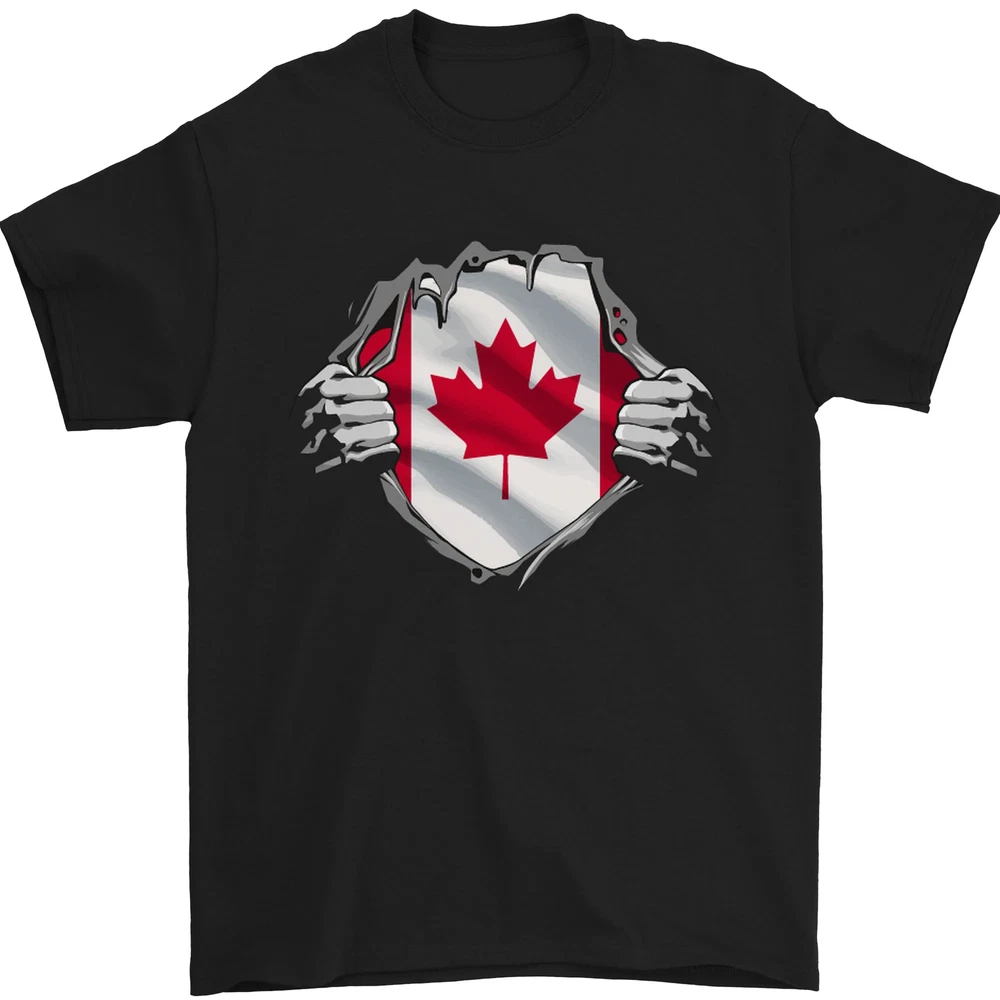 Canadian Flag Ripped Torn Gym Canada Day Mens T-Shirt 100% Cotton