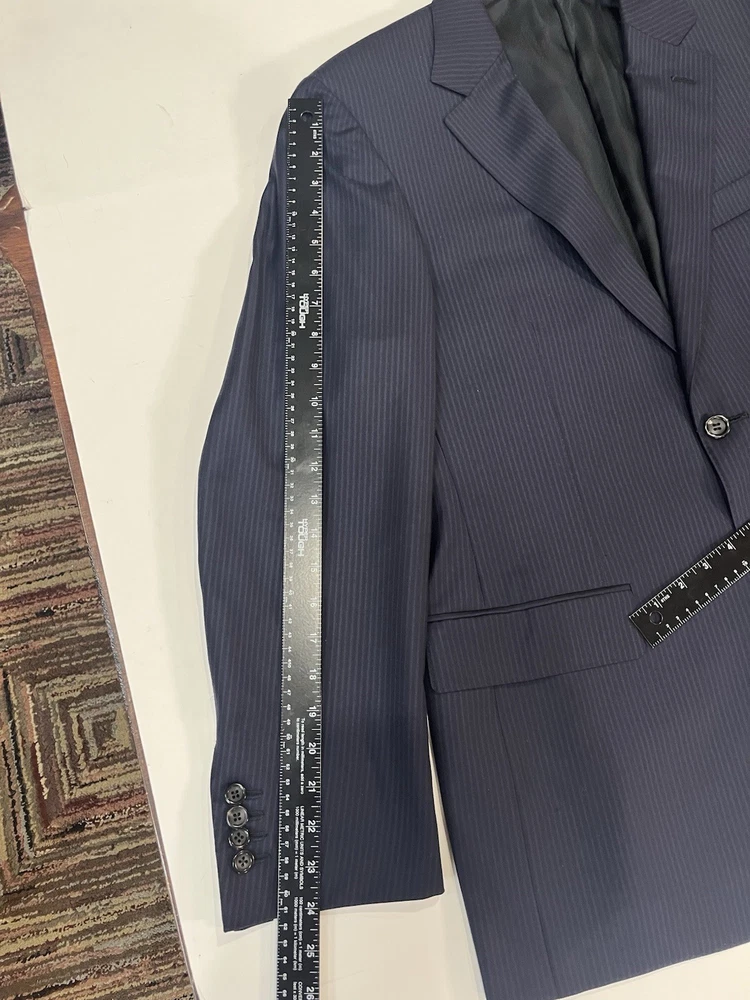Brand: Canali Jacket Front Button Style: Two-Button Front Type: Flat Front Waist Size: 42 Fit: Regular Handmade: No Color: Navy Department: Men Material: Wool Size: 42 Jacket Cut: Single-Breasted Vintage: No Chest Size: 42 Personalize: No Garment Care: Dry Clean Only Pattern: Striped Occasion: Business Lining Material: Wool Country of Origin: Italy Type: Blazer Style: Tuxedo Jacket Vent Style: Double-Vented Jacket Sleeve Button Style: Four-Button Size Type: Regular Jacket/Coat Length: Regular Jacket Lapel Style: Notch Features: Inner Pockets