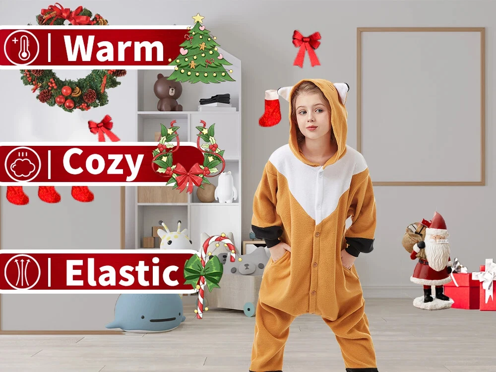 This Christmas, let's make our homes a haven of warmth, laughter and unforgettable memories - all in these festival fox one-piece pajamas. The fox one-piece pajamas are made of high quality polyester. Soft,skin-friendly and elastic,keeping you comfortable all day long. Not easy to get pilling. Not easy to shed. Not easy to easily. The hat design:The hat is designed according to the real appearance of the fox, which is cute and fashionable. The front botton:Front button design in accordance with the fox onesie. At the same time easy to button,strict thermal insulation. There is a horizontal zipper on the back of the pajamas,so it is more convenient to go to the toilet. Occasions On chilly winter evenings,our fox onesies provide extra warmth and coziness. Whether watching a movie, reading a book, or simply relaxing in bed, the material keeps one comfortably warm. On lazy weekend mornings or afternoons, the fox pajamas are perfect for lounging around the house, doing nothing in particular, and simply enjoying the comfort of being cozy and warm. When you just need to run a quick errand, like checking the mailbox or grabbing a few items from the store, the pajamas can serve as a casual and comfortable outfit. Children often love pajamas with fun designs like fox.These pajamas can make bedtime more exciting and help children feel cozy and ready for a good night's sleep. During holidays like Christmas or Halloween, animal themed pajamas like these can be a great way to celebrate. They add to the festive atmosphere and make for fun photos and memories. When hosting a sleepover or pajama party, fox onesies add a fun and unique element.Children can play, watch movies, or simply hang out in their fox pajamas, creating memorable experiences. The Shipping We will ship the item within 1-3 days after receiving the payment. Feedback If you find any problems (for example size,broken,color,wrong itemand so on) after receiving the goods, please contact us in time,we will try our best to solve you problems. If you are satisfied with the product, please give us five stars.