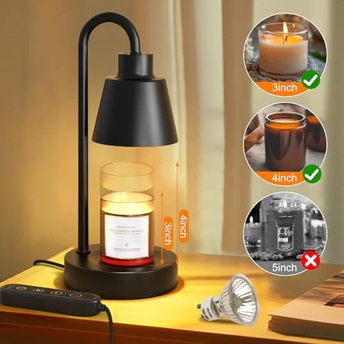 Return Policy Fast Delivery Trusted seller Candle Warmer Lamp,Dimmable Candle Warmer Light,Warm White Electric Candle Lamp Warmer with Timer,Black Wax Melt Warmer for Mini Jar Candles,House Warming Christmas Gifts Product Description 【Why Choose Candle Warmer Lamp】Candle warmer lamps offer a safe way to enjoy candles. Use the 50W GU10 halogen bulb to melt candles evenly from top to bottom for fast and efficient scent distribution. No flamed, no smoke, no pollution 【Adjustable Brightness】wax melting light has 4 levels of adjustable brightness,no flicker.You can control the melting speed of your candles based on the adjustable brightness; Brighter the light, the faster the candle melts and the stronger the scent 【Timer function】Candle warmer lamp with timer function, you can set the time of 2 h/4 h/8 h according to your need, and it will go out automatically. Creates a cozy night light, allows you fall asleep with scent and cozy light.Suitable for candles up to 4.1 inch in height 【Minimalist Design】Sleek black metal base and minimalist design candle lamp; can be used as an aromatherapy lamp to create a serene atmosp during yoga or meditation, and is also suitable for freshening up any space 【Modern Home Decor】Candle lamp warmer, presented in an exquisite and tightly box, is good choice for present giving on various occasions. Holidays, anniversaries, or housewarmings, it offers a thoughtful way to show you care. 【Ultimate Present】Candle Warmer Lamp is a delicate and functional decorative lamp for living rooms, bedrooms, offices, yoga studios, cafes and ect.Comes with warm white 1 GU10 bulb(Excluding candles).If you have any questions ,Please let us know and we will respond within 24 hours. Shipping Returns Payment Shipping Shipping is FREE to all addresses other than APO/PO boxes in the lower 48 states. All our stock ships from US-based warehouses. Shipped via USPS or UPS (depending on location and package weight) Unless stated otherwise, all orders will ship within 24-72 hours of your payment being processed. Check our feedback to see the great reviews of FAST shipping we offer. Returns Seller does not accept returns Payment We currently accept payment via eBay managed payments only. Once payment is cleared, we will dispatch your shipment within 1-3 business days. Please refer to the "Shipping" tab for more information regarding shipping speed to your destination.
