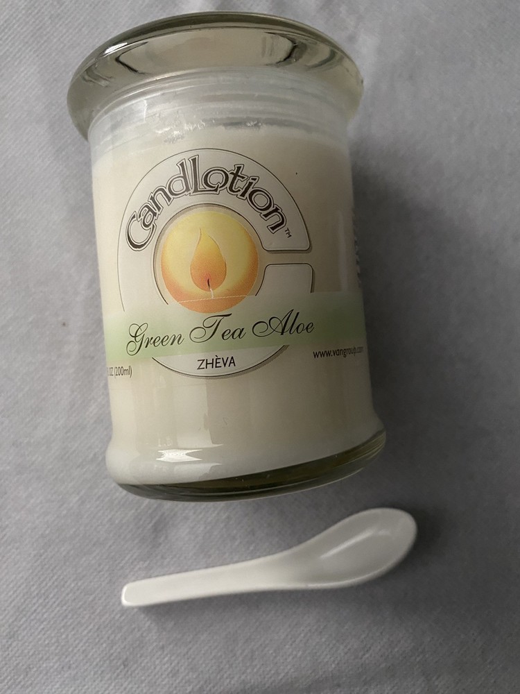 Candlotion green tea aloe 8 oz, 2-in-1 Moisturizer candle , designed to melt into a warm massage lotion, comes with spoon.