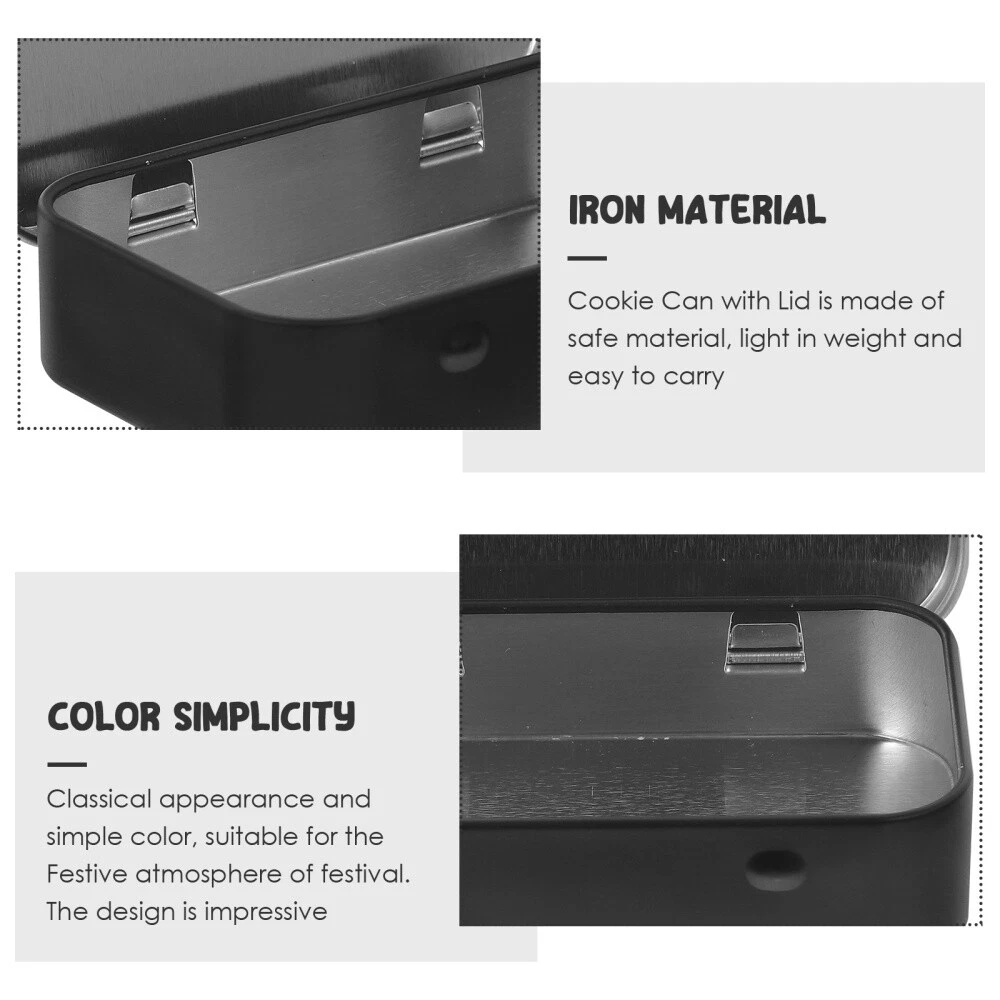 Brand: None Pattern: cookie tin with lid Style: cookie tin with lid Item Weight: 40.00 Model: BGODIP-B UPC: does not apply Item Height: 2.20 gtin13: does not apply Material: Iron Feature: charcuterie Item Width: 6.00cm Type: cookie tin with lid MPN: LA1848179PJ8A31S Color: Black Country/Region of Manufacture: China Item Length: 9.50cm Size: 9.5X6X2.2CM