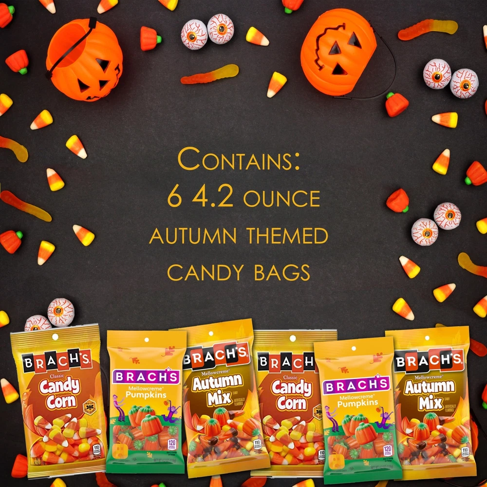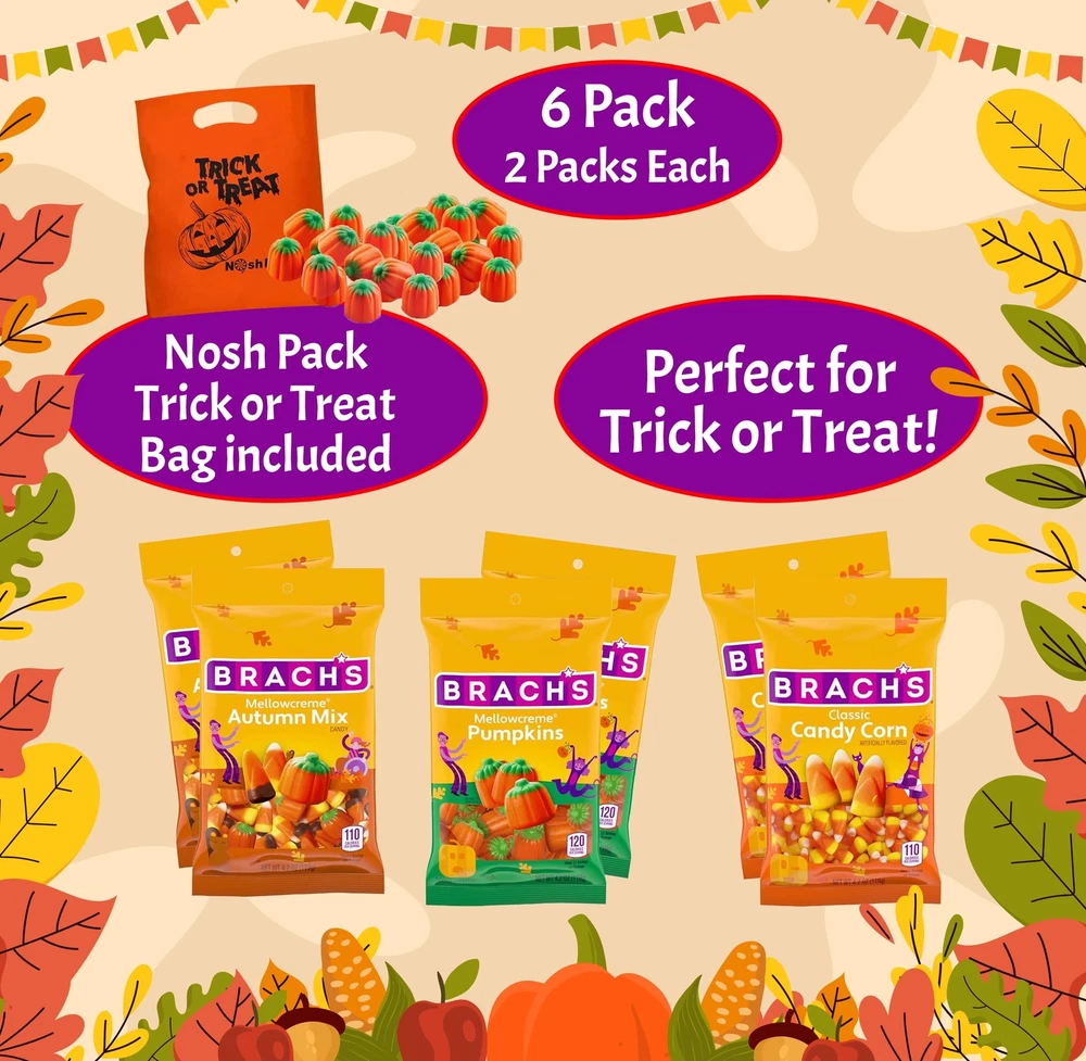Perfect for Trick or Treat! Variety pack of fall flavors makes this set the perfect thing to fill your trick or treat buckets with! Your friends will be delighted with these classic treats! Trick or Treat bag is included for the perfect complete holiday bag! gluten and nuts, making it a safe choice for those with allergies. Value Kit- Get 2 packs each of autumn themed candy in convenient pack! Comes with 2 Classic Candy Corn packets, 2 mini Pumpkin Candy, and 2 Candy Corn jelly beans gummy. Trick or Treat Bag included as well. Flavor of Fall - Individually wrapped classic autumn candy is perfect for trick or treat jelly bean candy gifts, and all types of festive fun! Add to baked goods or candy snacks bowl at your pumpkin carving contests and fall party! The perfect size for treat sharing and gift giving. Bring Autumn Home - Decorate seasonal treats with these cutely shaped candy corns, pumpkins and assorted seasonal themed candies! The possibilities are endless! Whether you're looking for a free spirited snack or a addition to your holiday decorations, we have you covered. Comes packaged in convenient pouch size, making them easy to share. Perfect for Trick or Treat! Variety pack of fall flavors makes this set the perfect thing to fill your trick or treat buckets with! Your friends will be delighted with these classic treats! Trick or Treat bag is included for the perfect complete holiday bag! gluten and nuts, making it a safe choice for those with allergies.